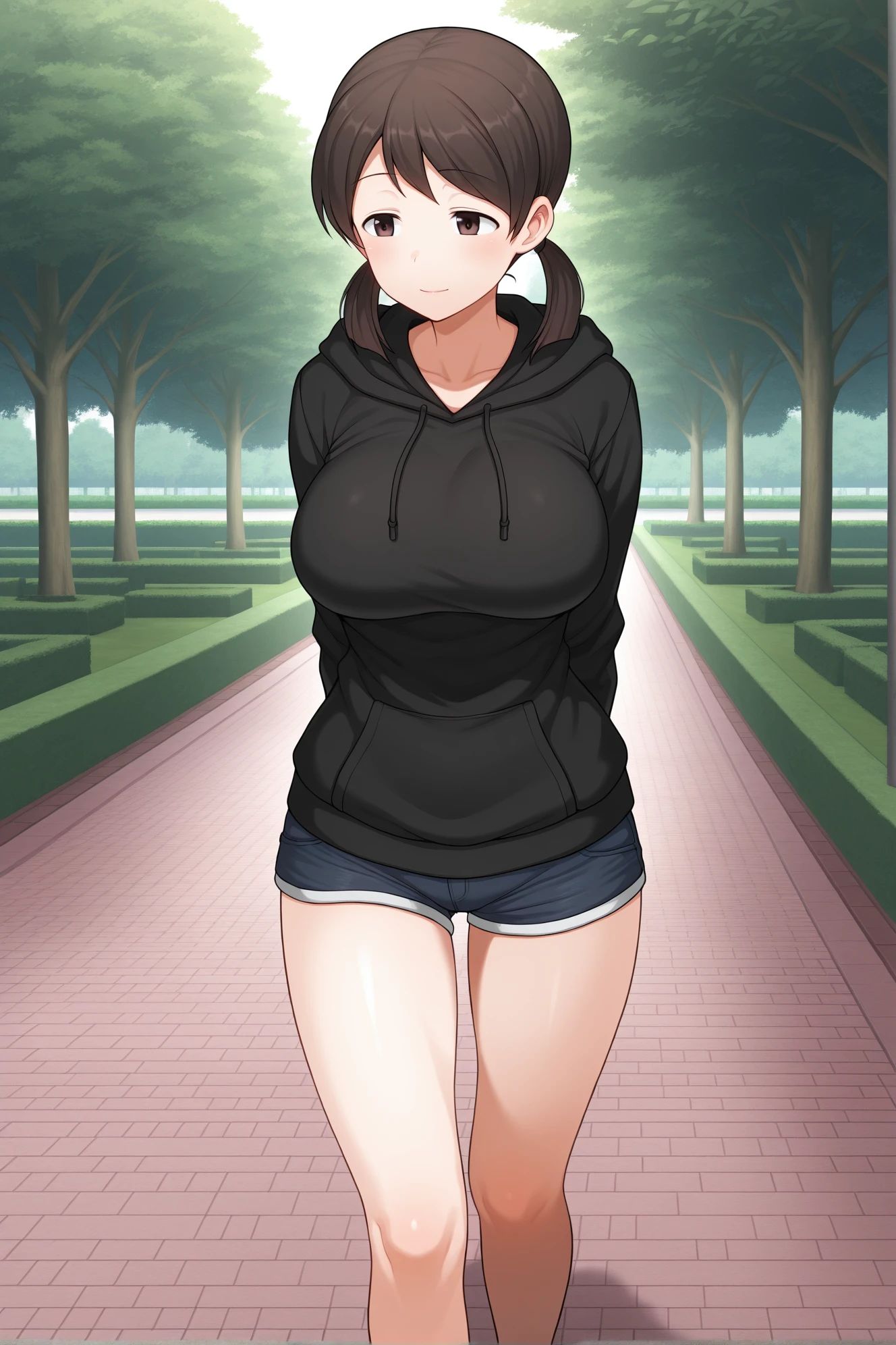 Additional positive trigger/key words: brown eyes, brown hair, low twintails,