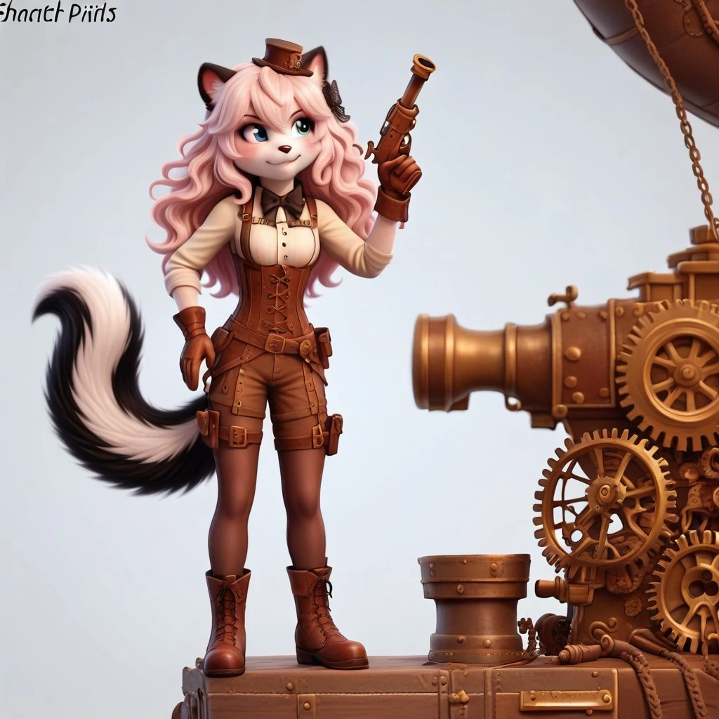 A model of Samatha Skunk, a steampunk engineer and world explorer!