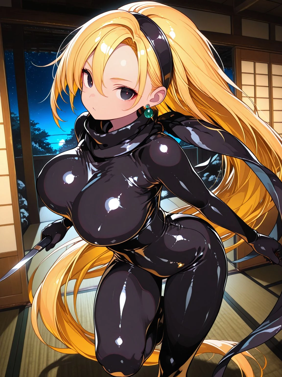 bodysuit,black bodysuit,skin tight,scarf,black scarf,earrings,jewelry,black headband,black hairband