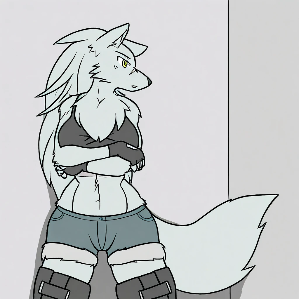 Velvela: velvela, grey fur, wolf, yellow eyes, scar, chest tuft