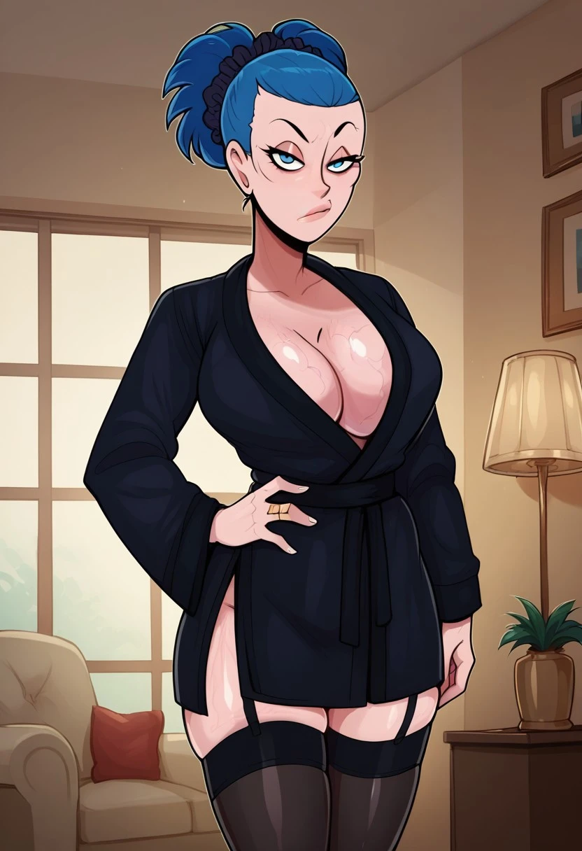 bathrobe, earrings, garterbelt, thighhighs, towel on headOptional Tags: