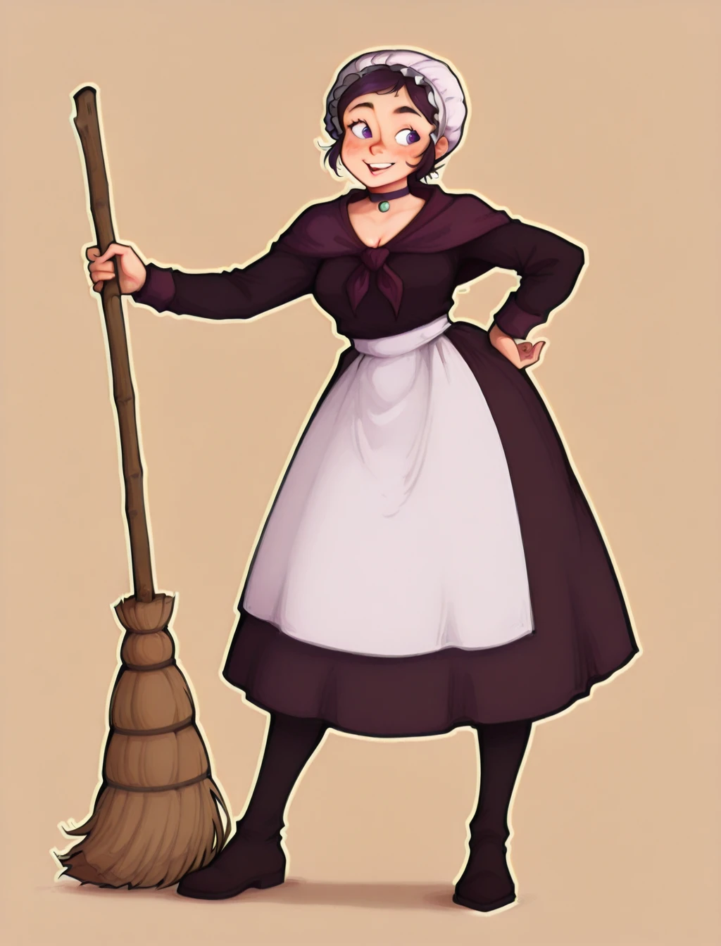 bonnet, choker, purple scarf, apron, purple dress