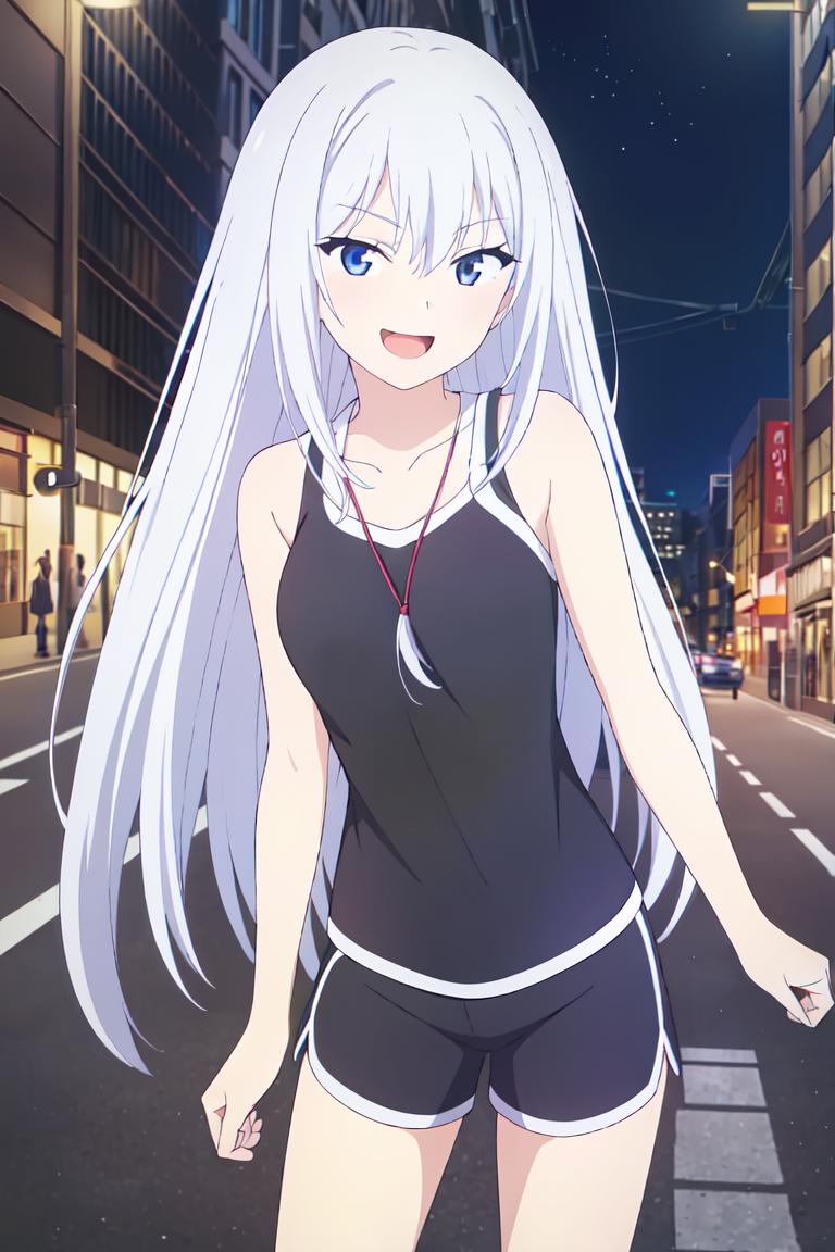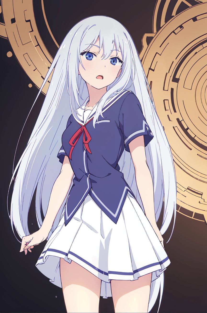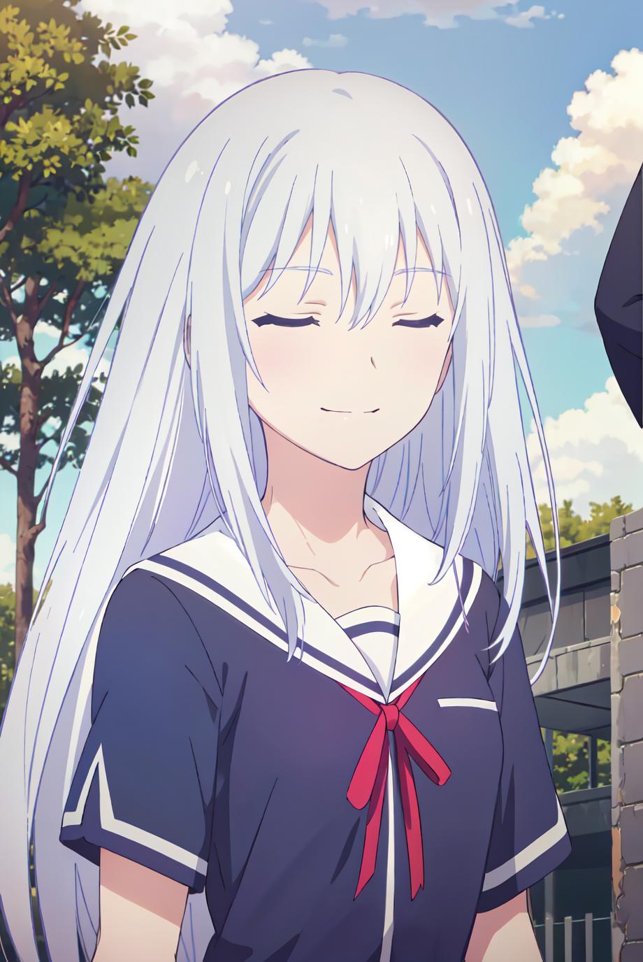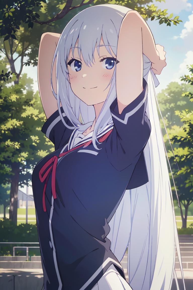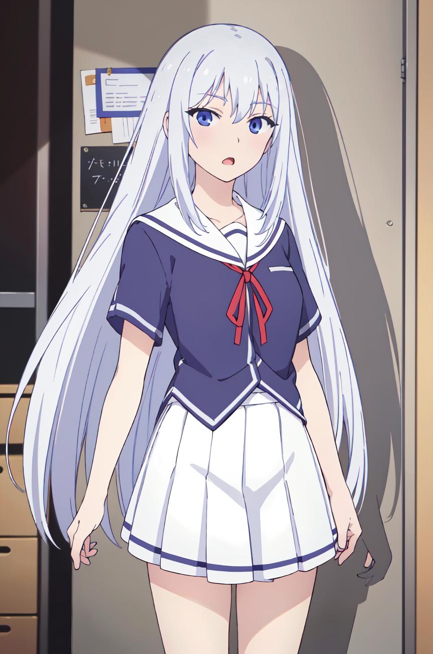 Masuzu, blue eyes, long hair, school uniform, white hair, bangs,