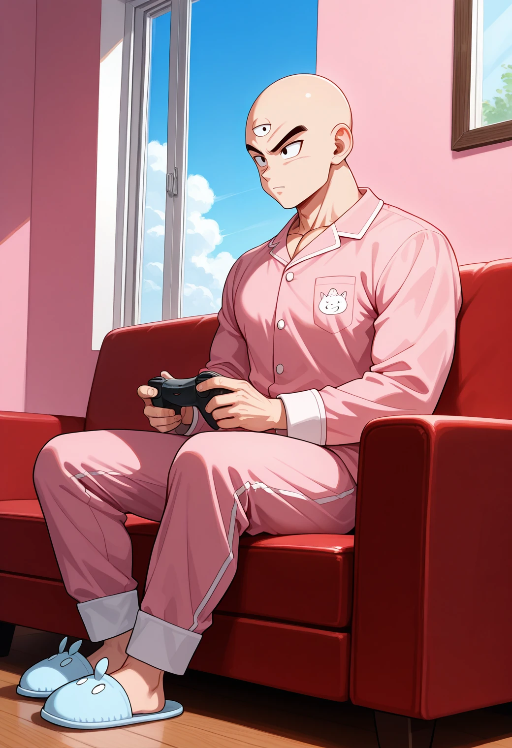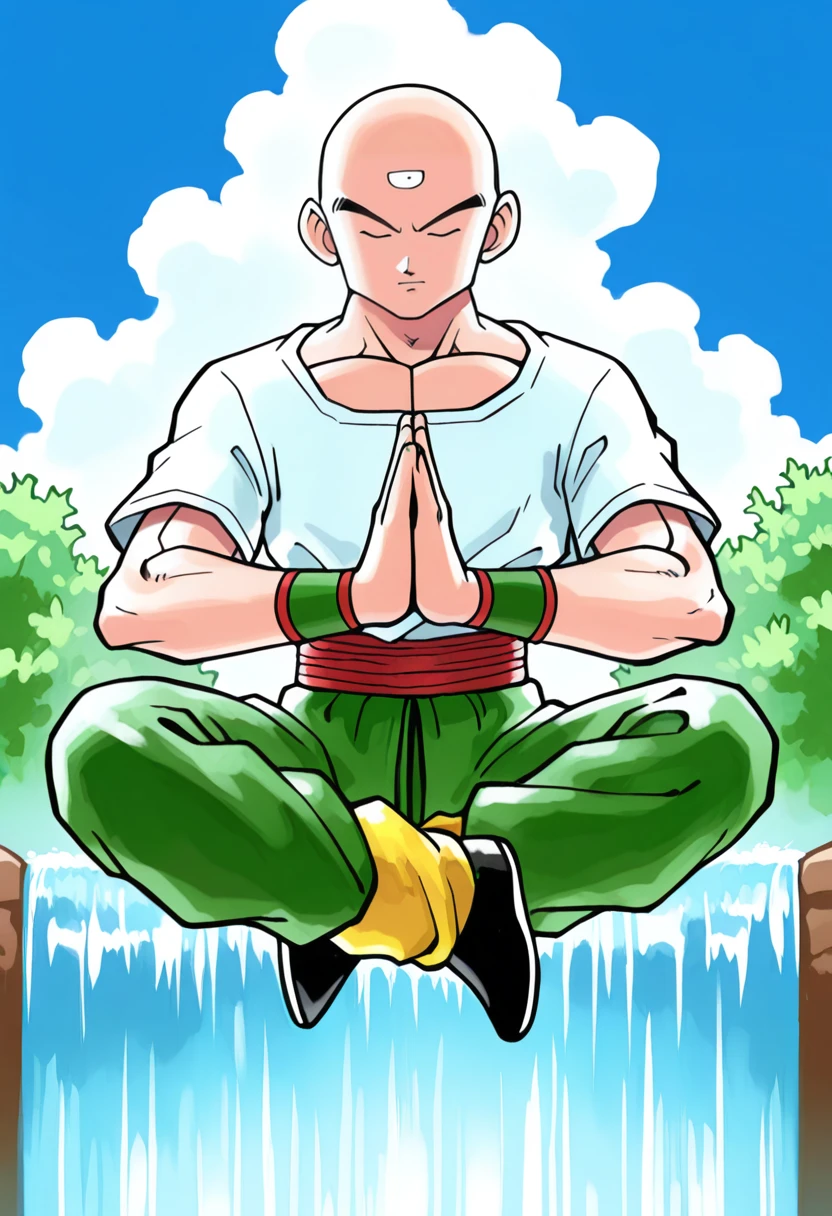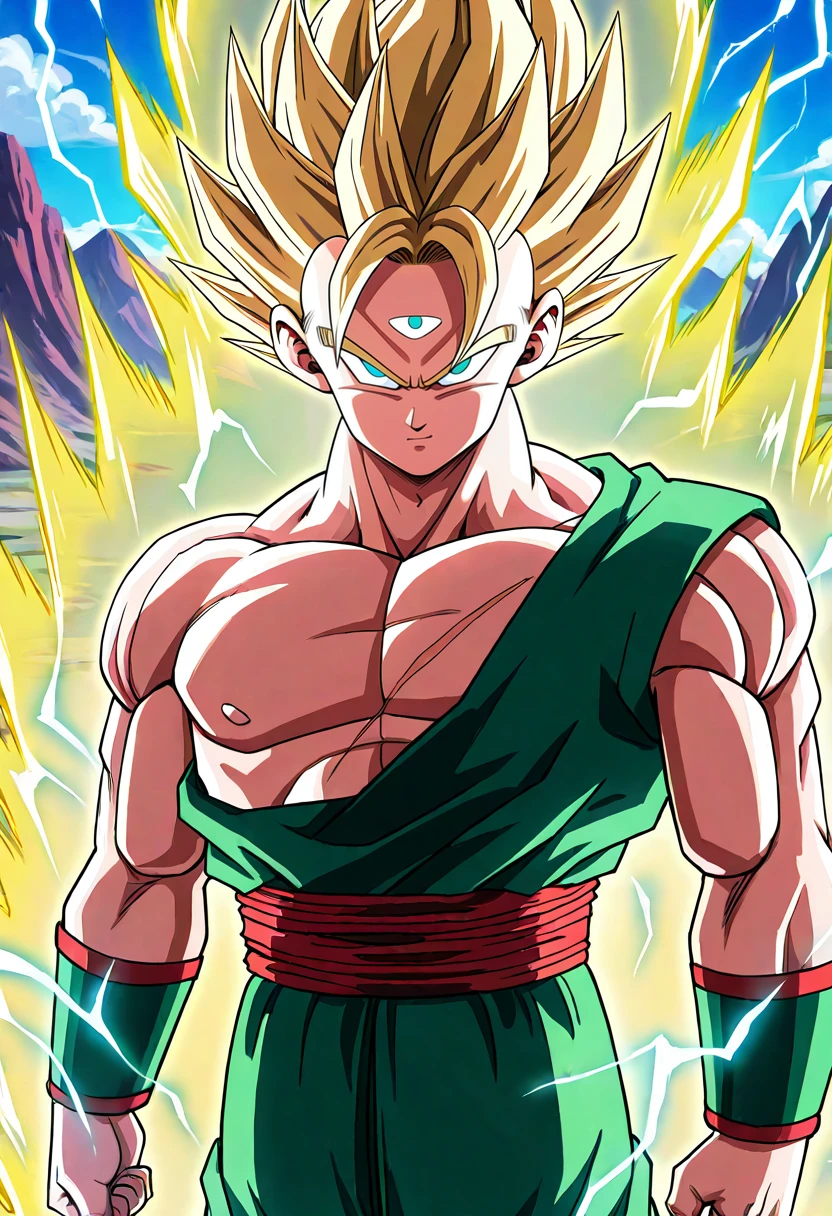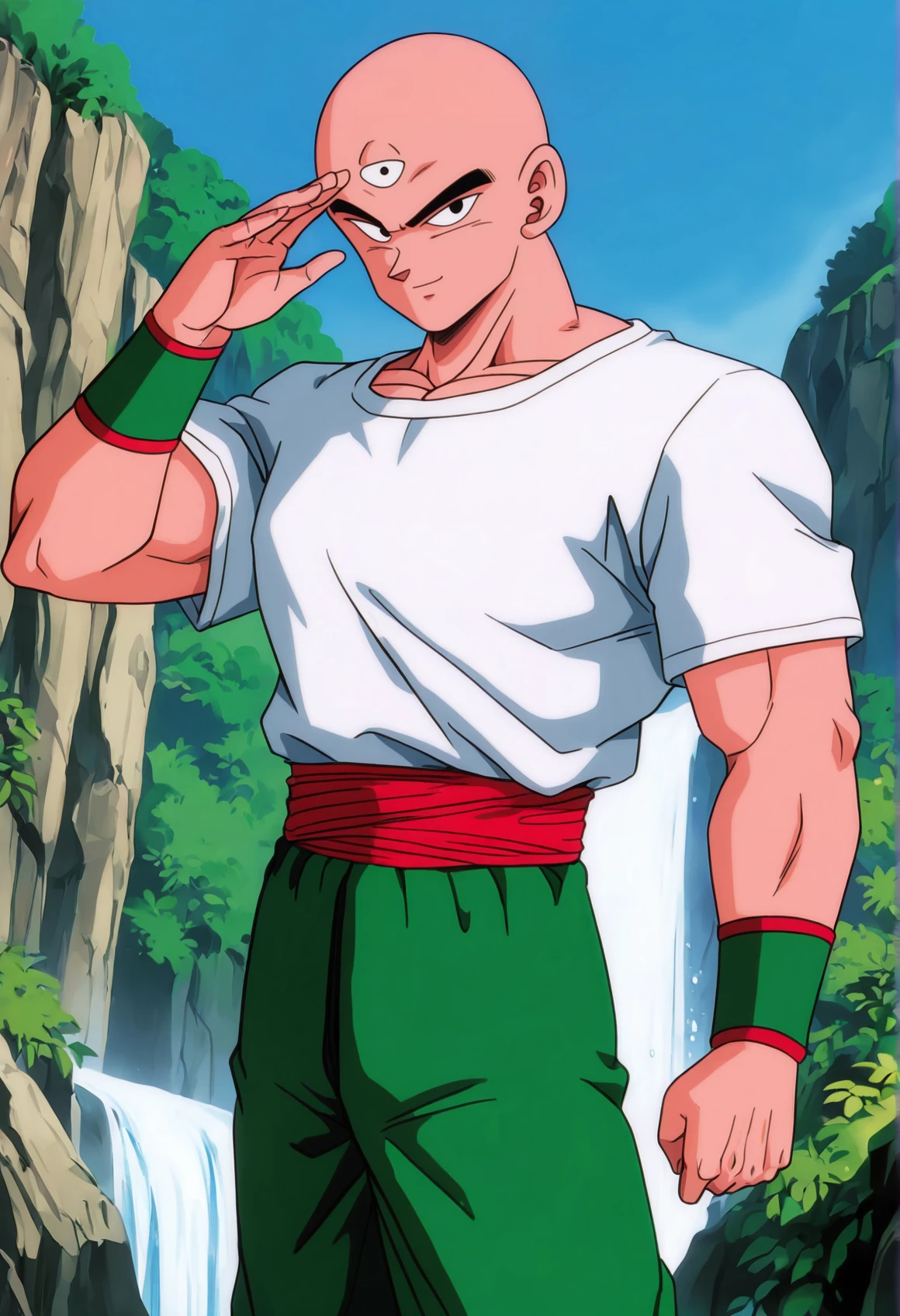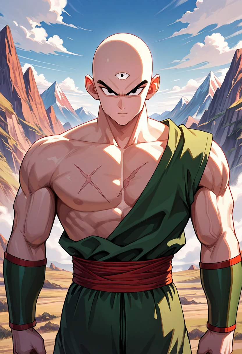 tien, third eye, bald, black eyes, muscular male