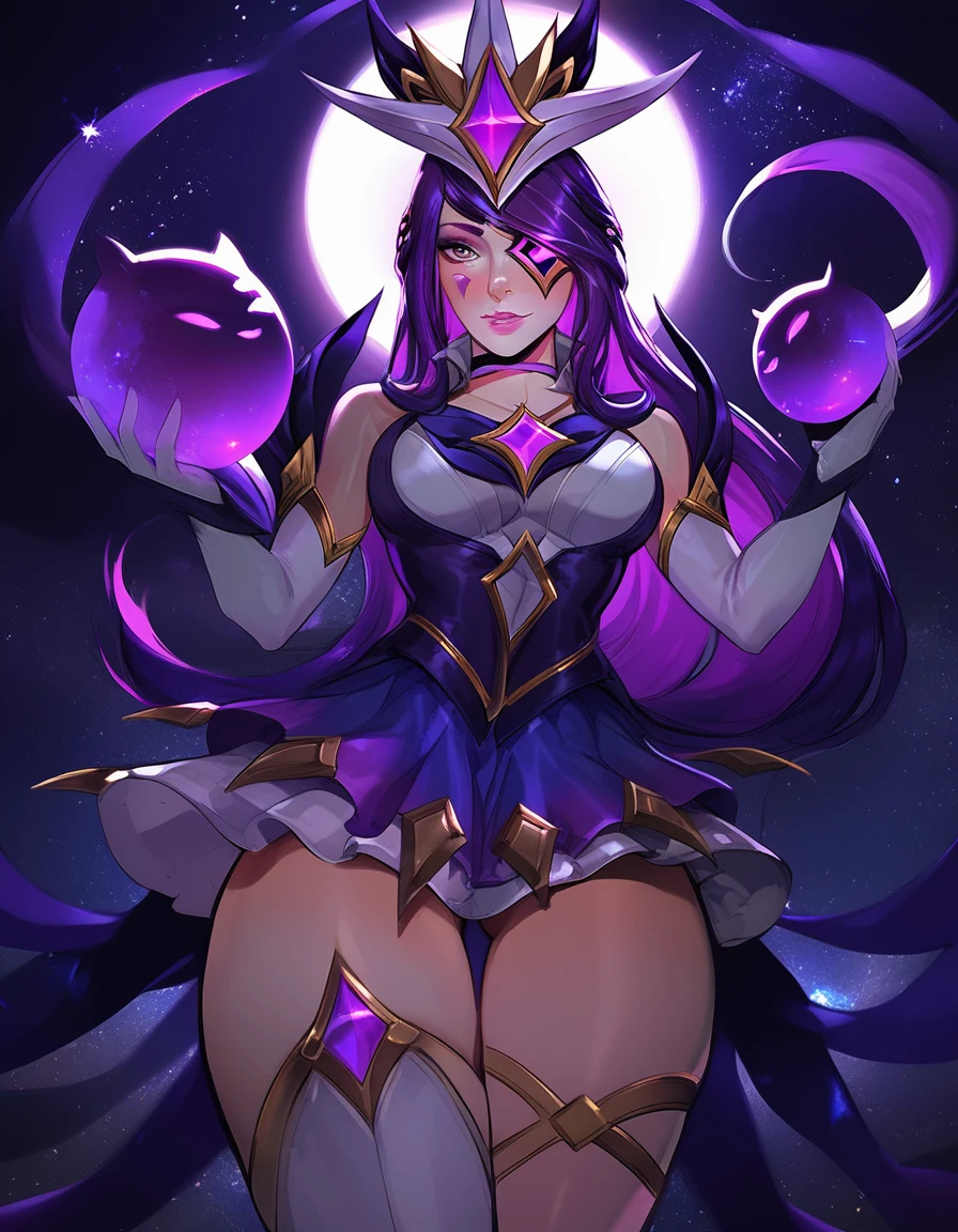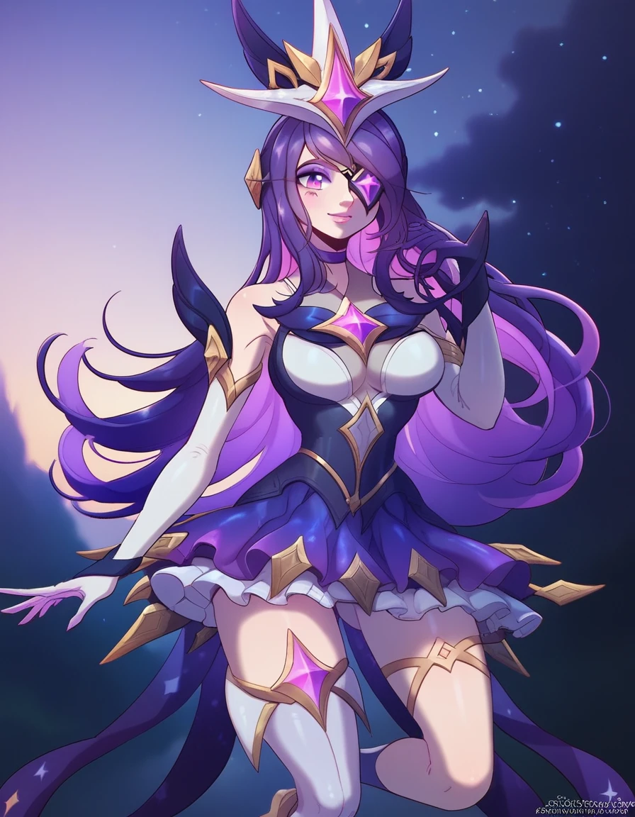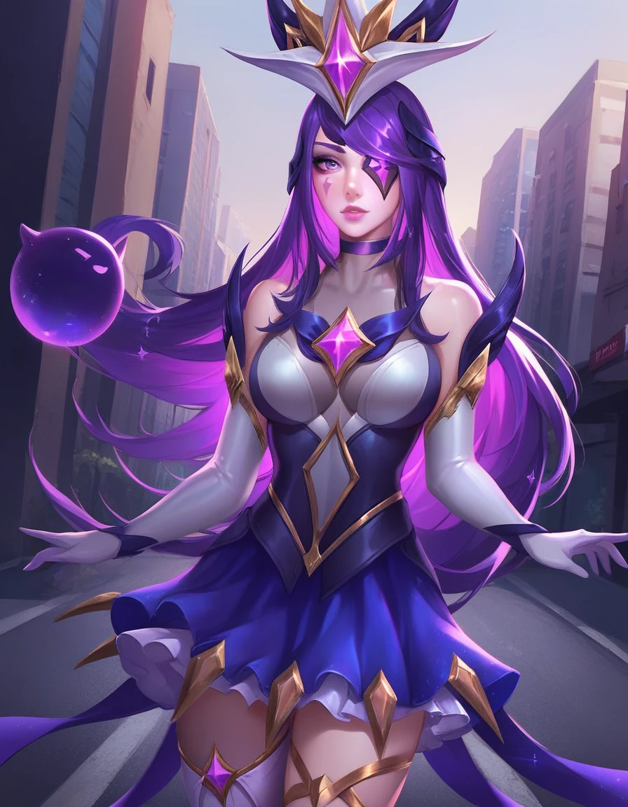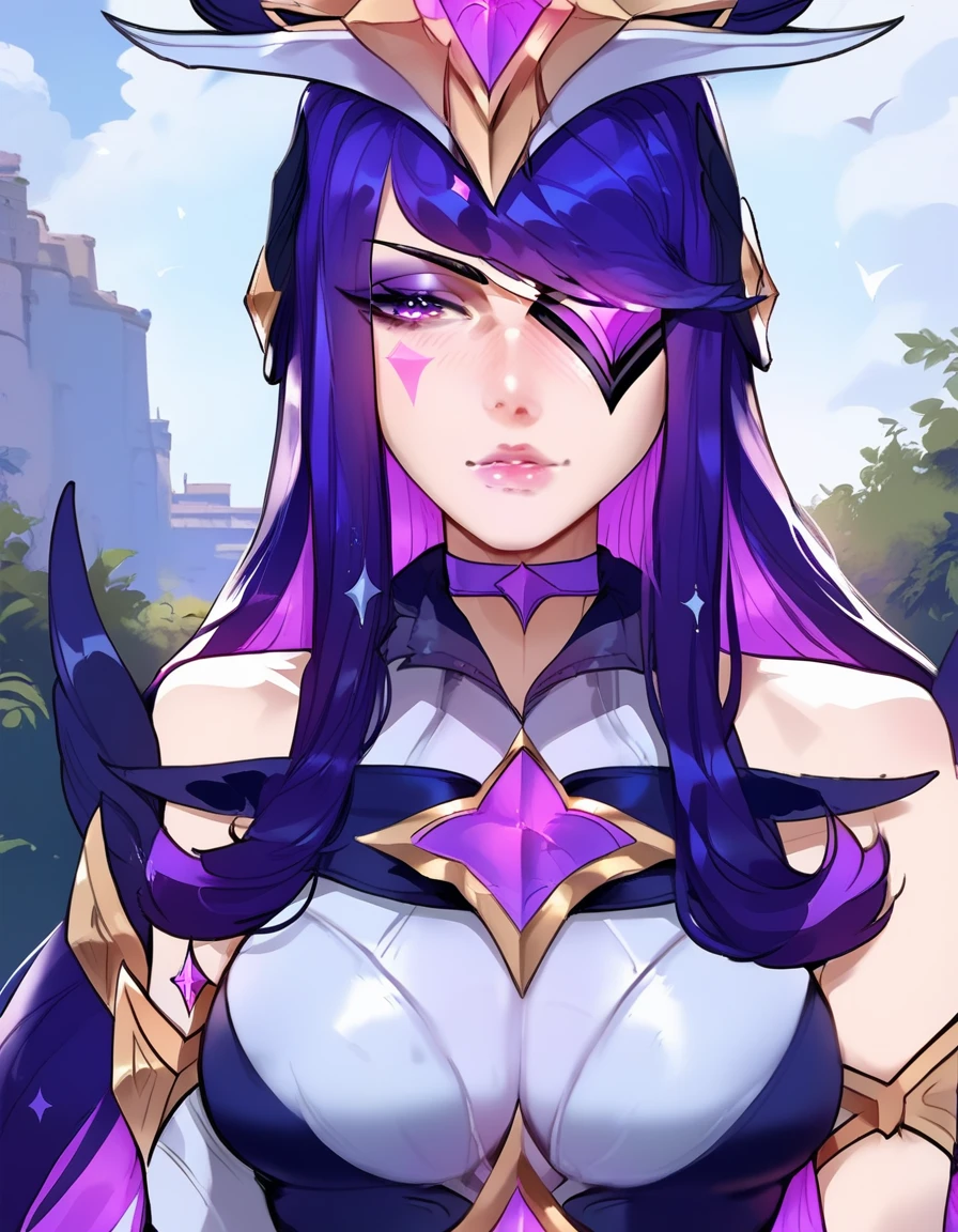 Tags for head: "headgear, eye patch, facial mark, purple eyeshadow, multicolored hair, hair ornament"