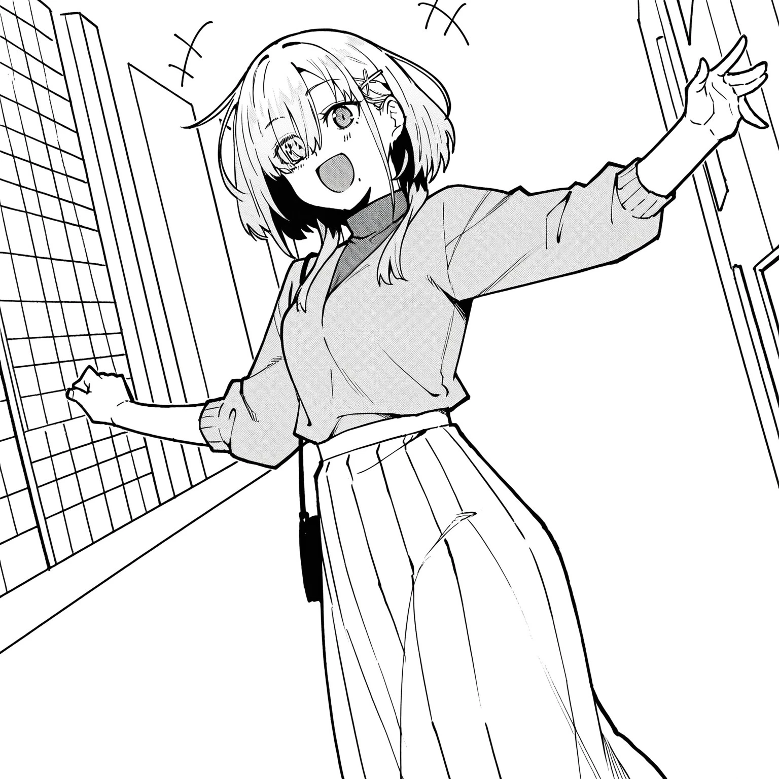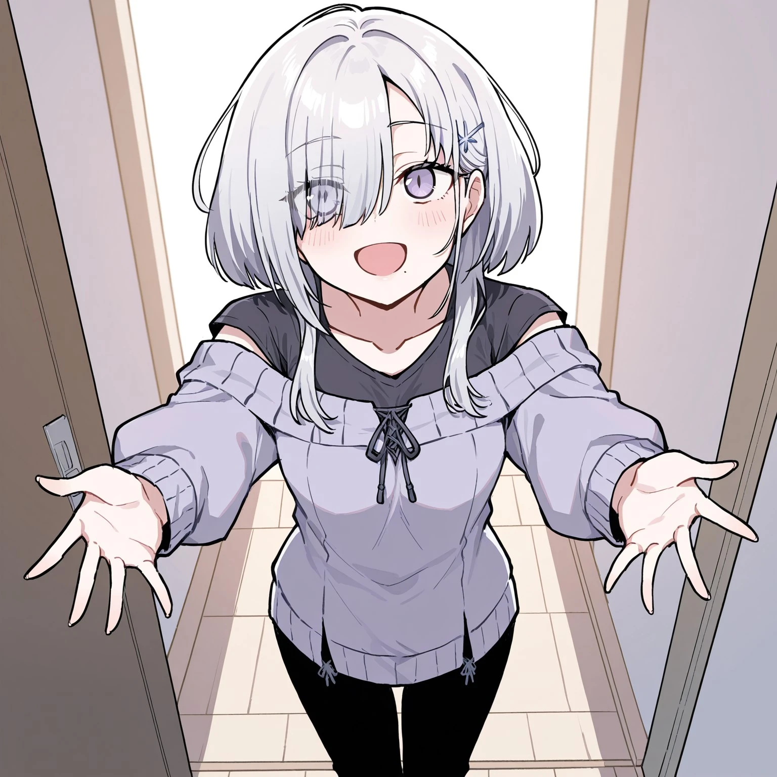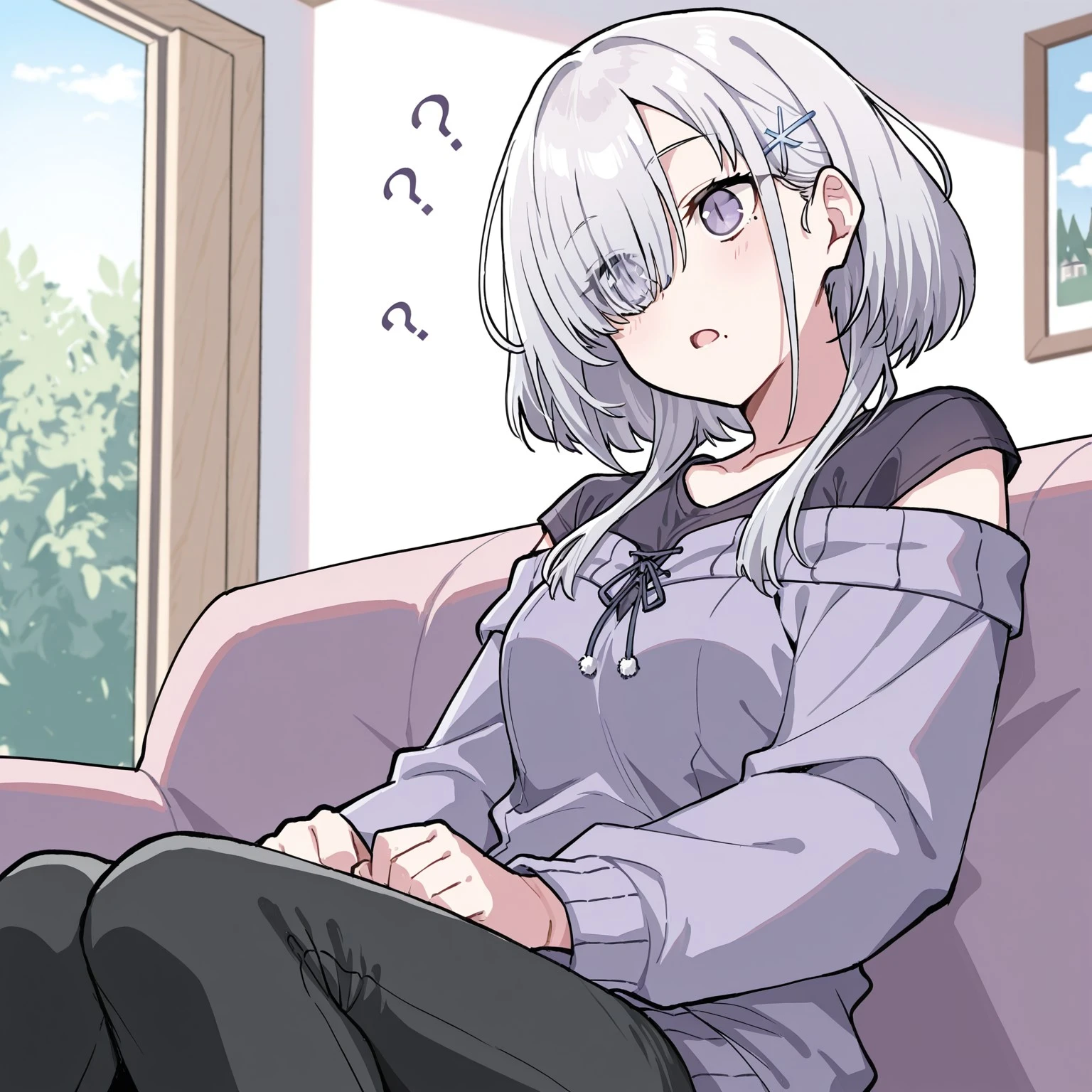 Base: ritsbase, 1girl, hair over one eye, short hair with long locks, eyes_visible_through_hair, bangs, hairclip, hair ornament, mole, mole under mouth, medium breasts