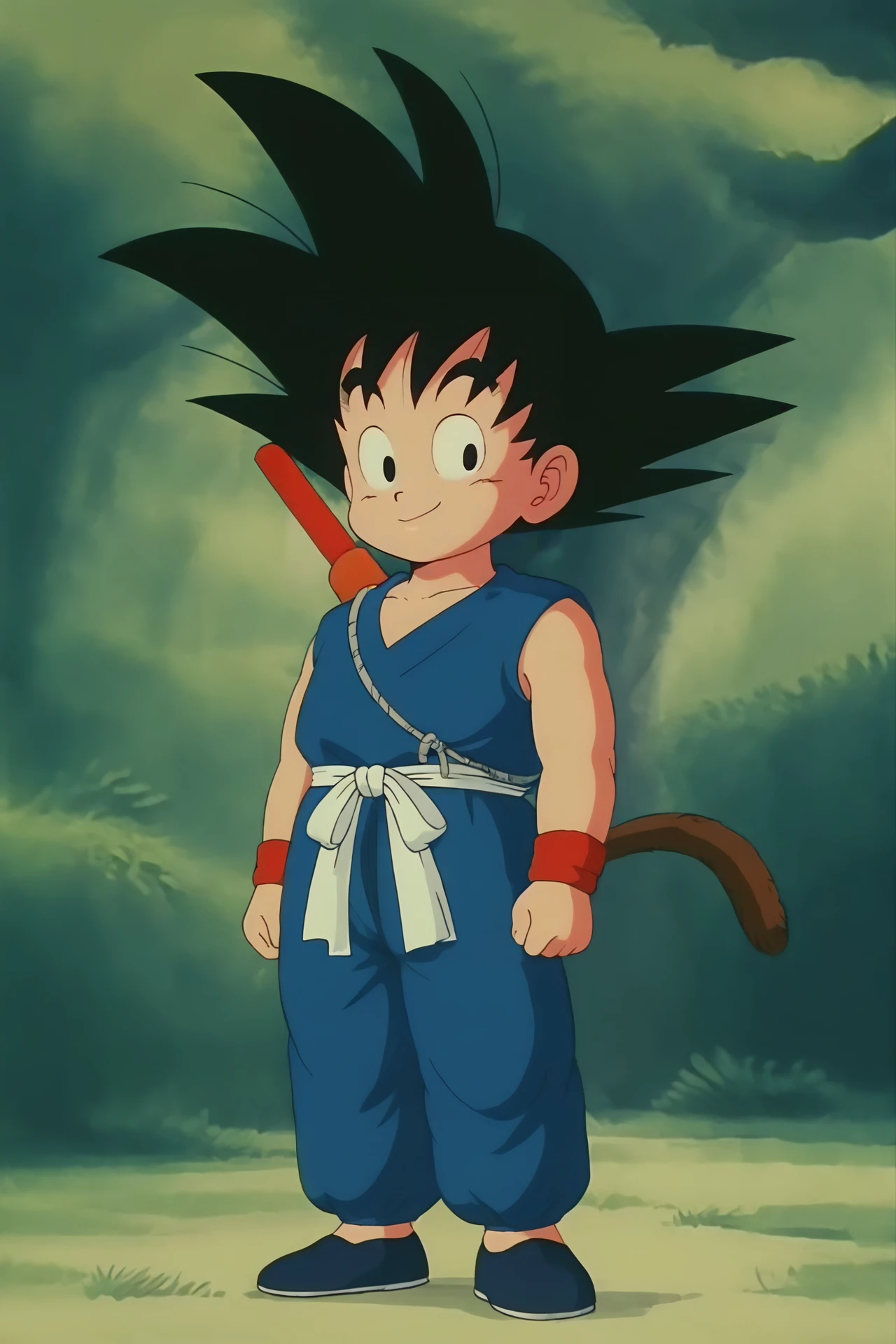 son goku, black hair, black eyes, spiked hair, monkey tail, male child,