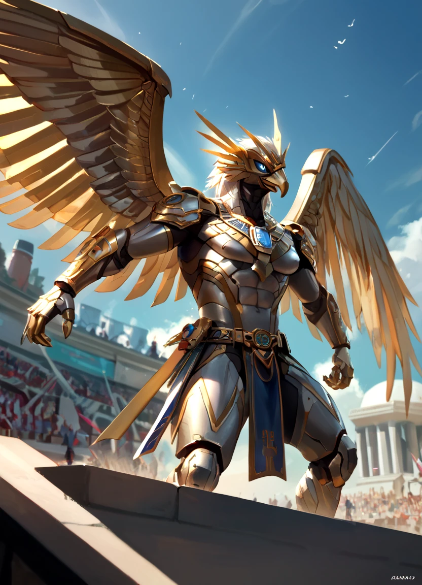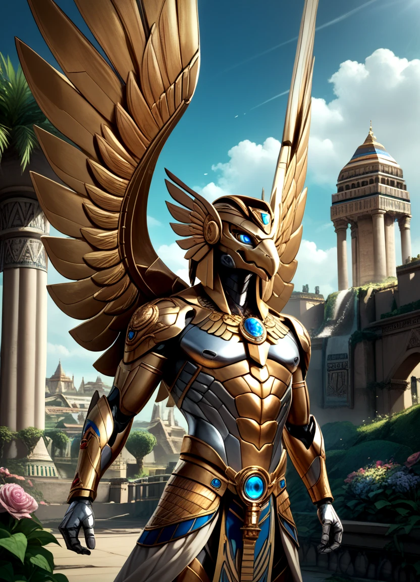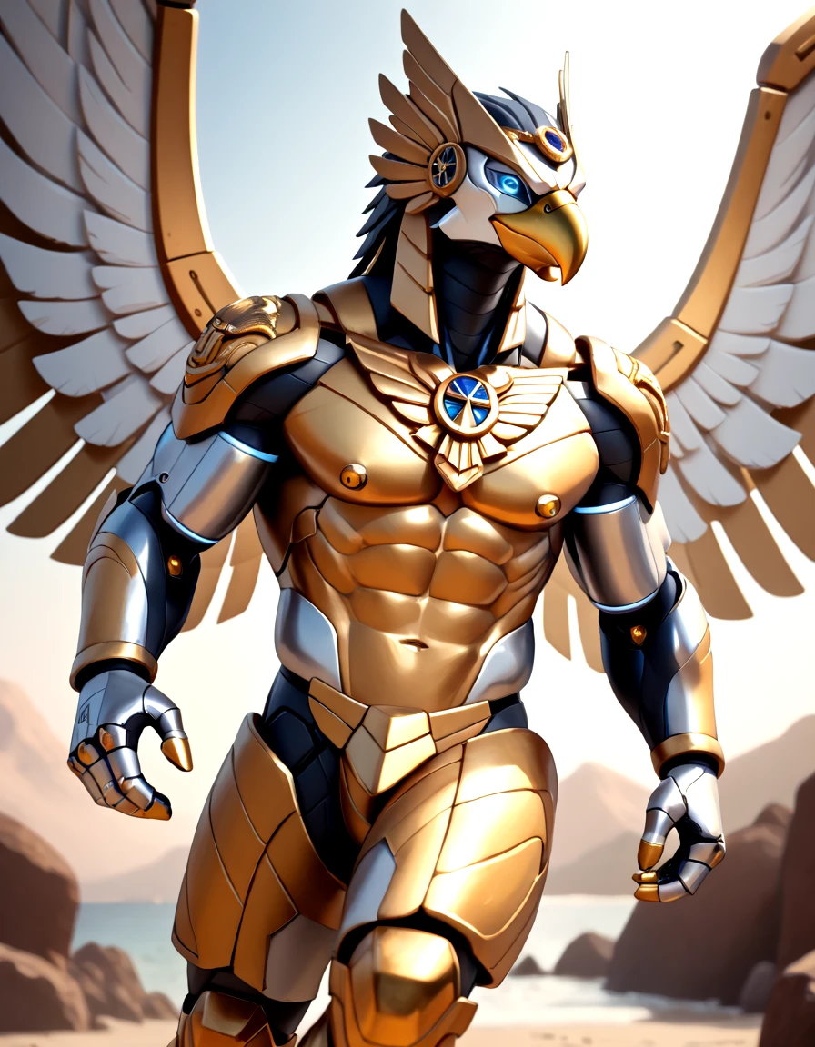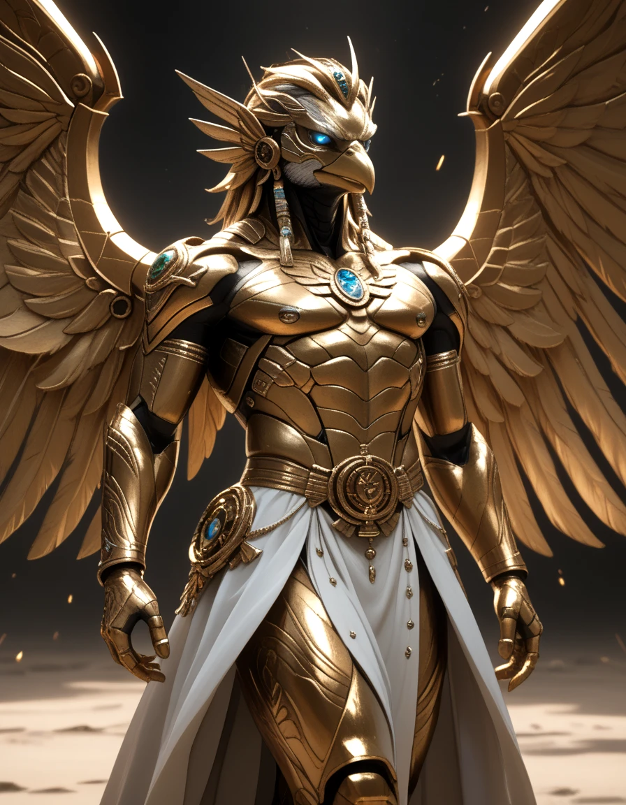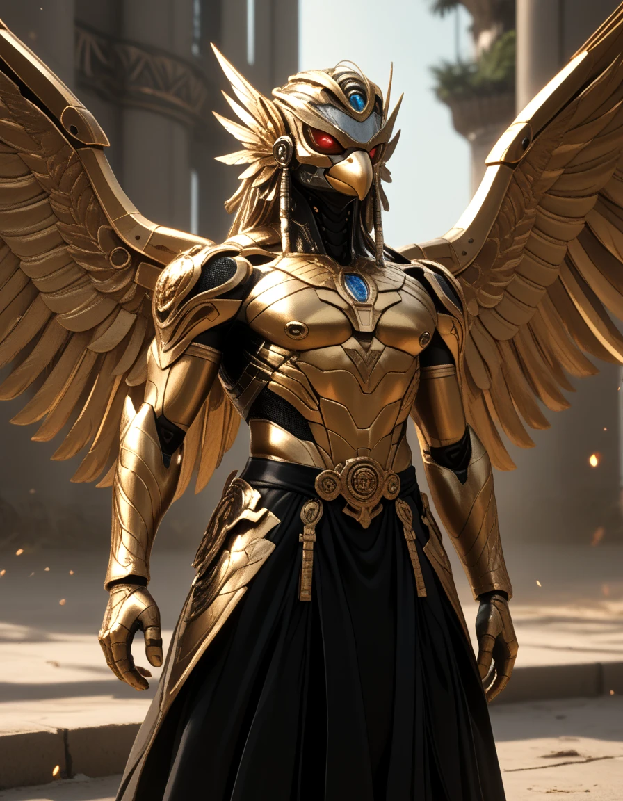 The prompts for this lora are horus, gold, silver, metal skin, golden silver metal skin, golden metal skin, silver metal skin, wings, muscular, armor, mech, mecha, robot, Egyptian, fighting, battle, and dynamic action. There were others used to train this lora, yet I posted the ones common for most. I also used temple, city, palace, garden, destroyed temple, destroyed city, destroyed palace, and monumental architecture.