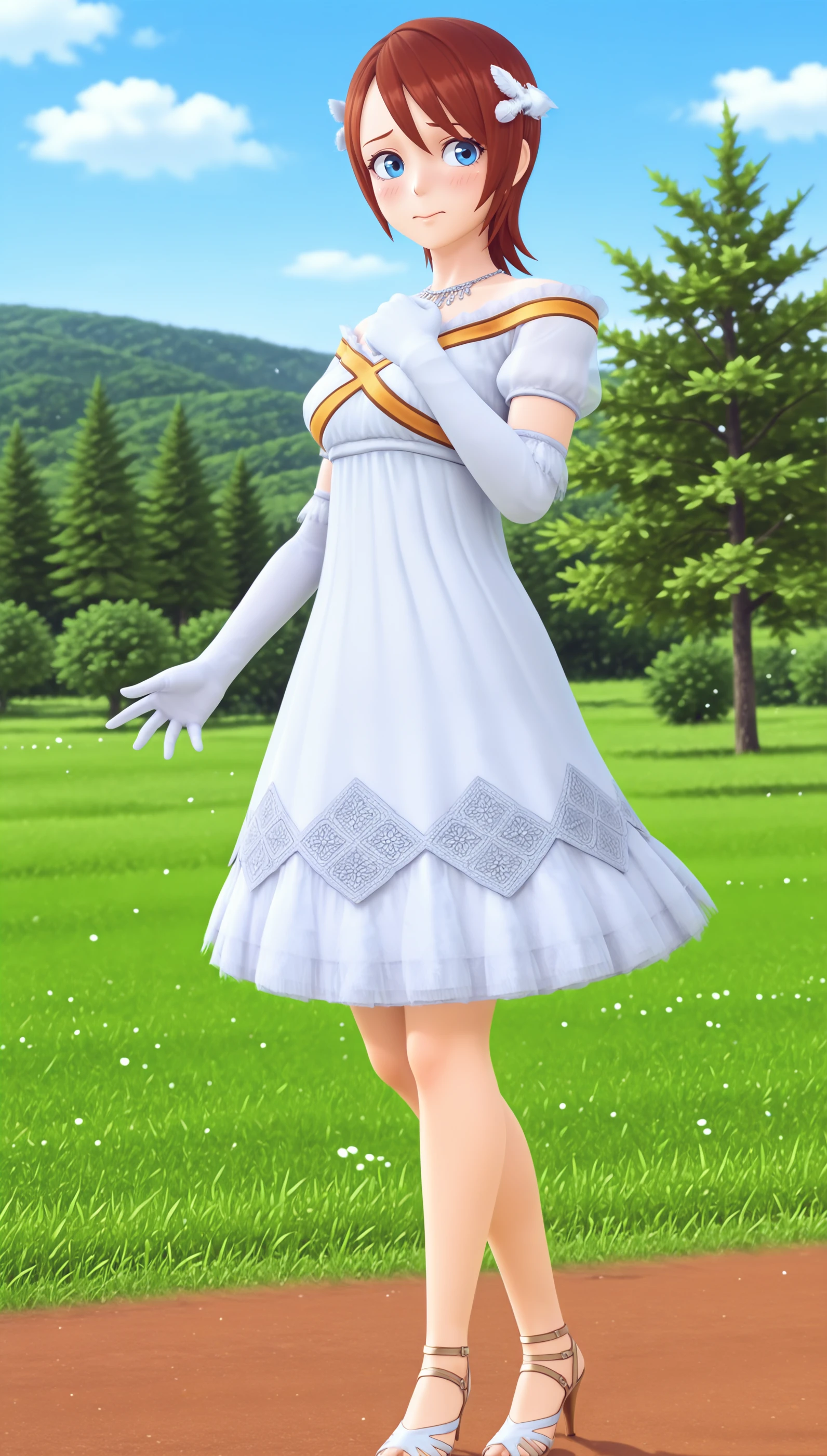 Optionnal Words: gloves, dress, shoes, elbow gloves, high heels