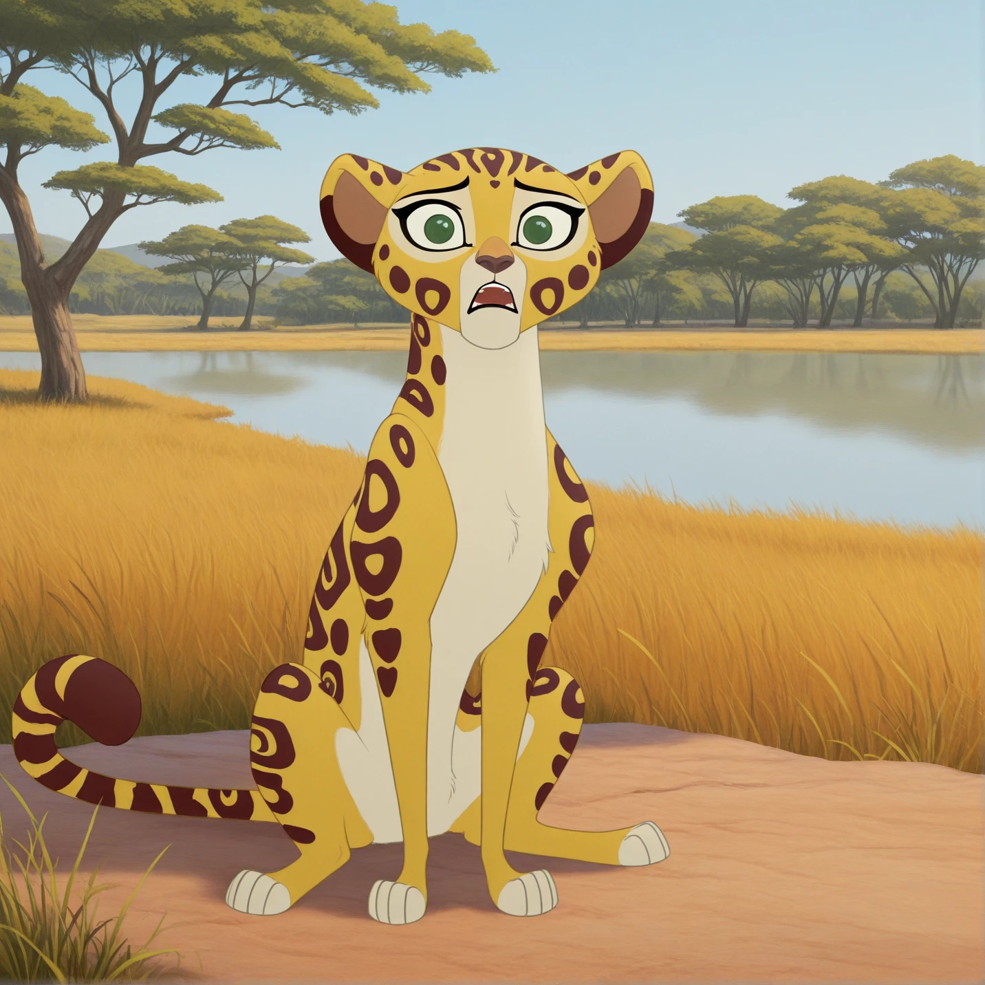 Fuli, feral, cheetah, green eyes, folded ears, tail,