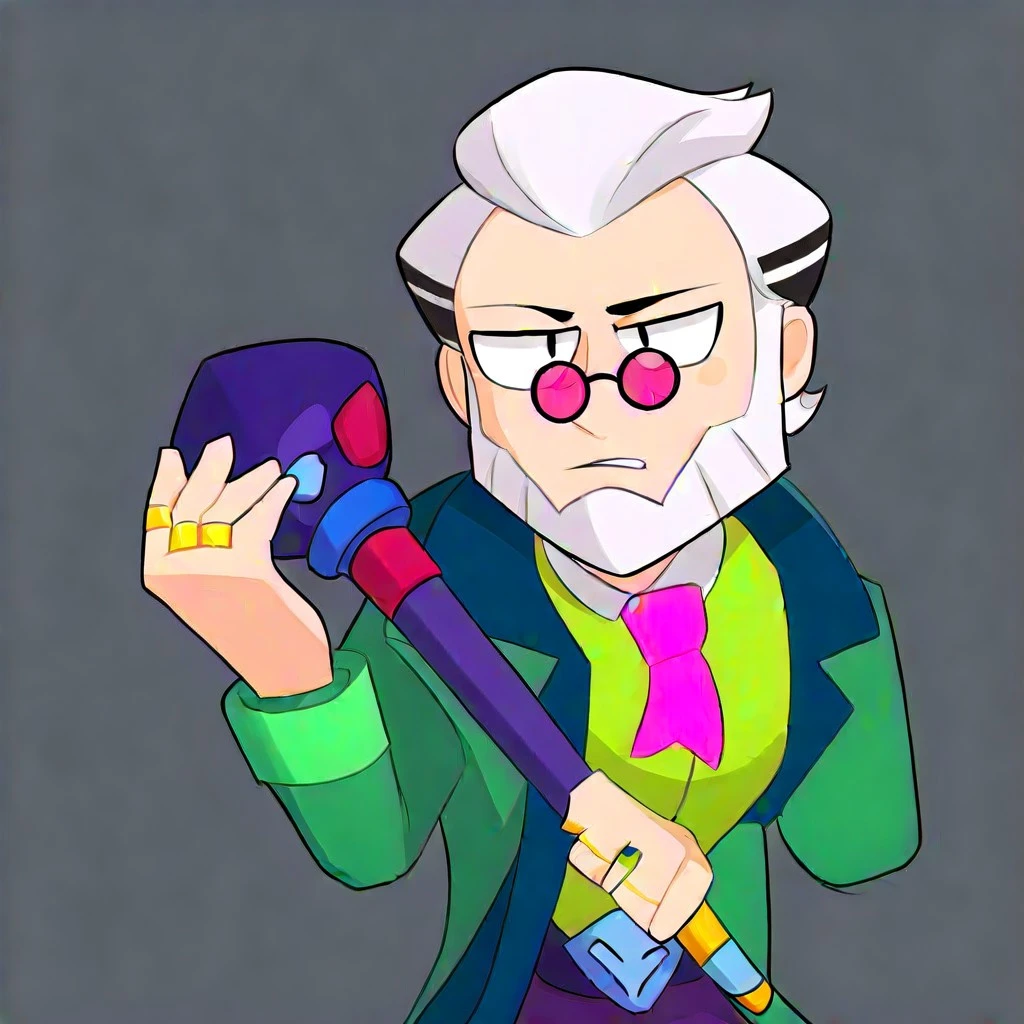 Byr0nBS, 1boy, old man, white hair with black side hair, slicked back hair, facial hair, tiny pink glasses, green coat, pink necktie, light green shirt, rings,