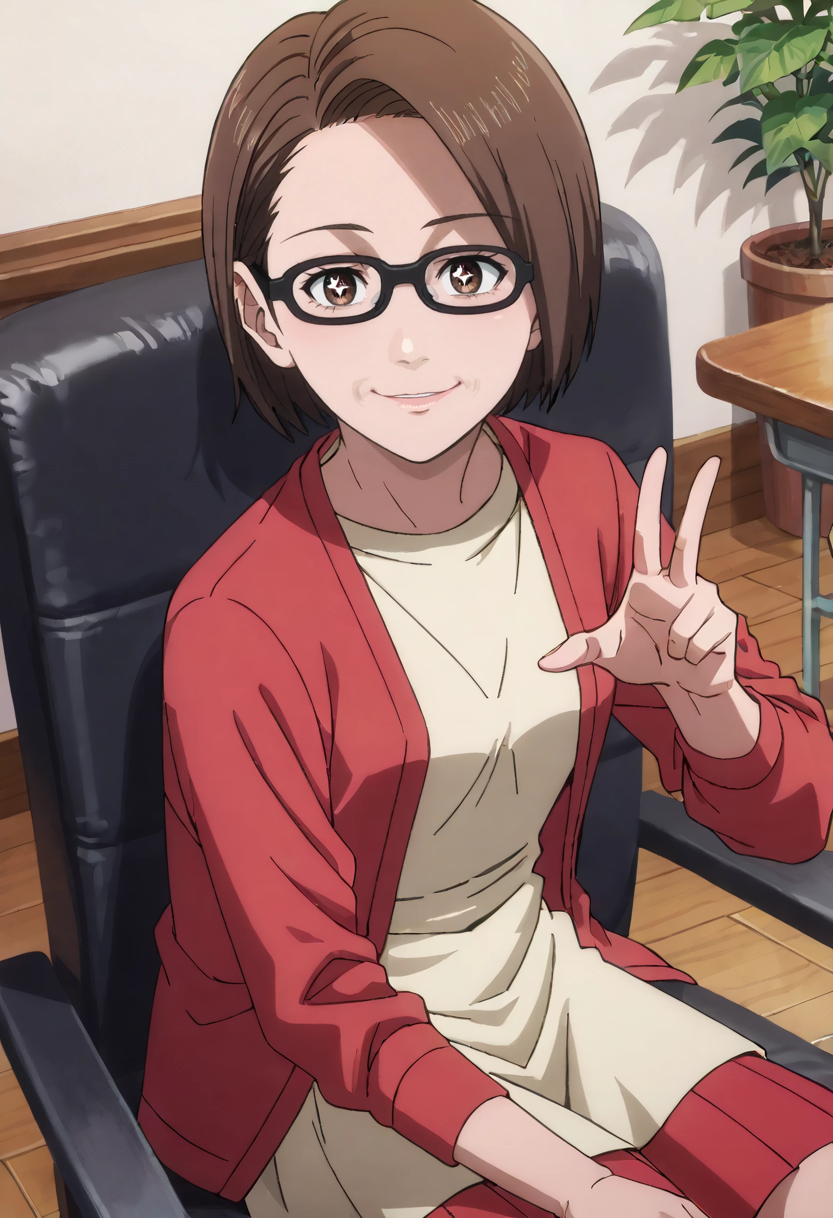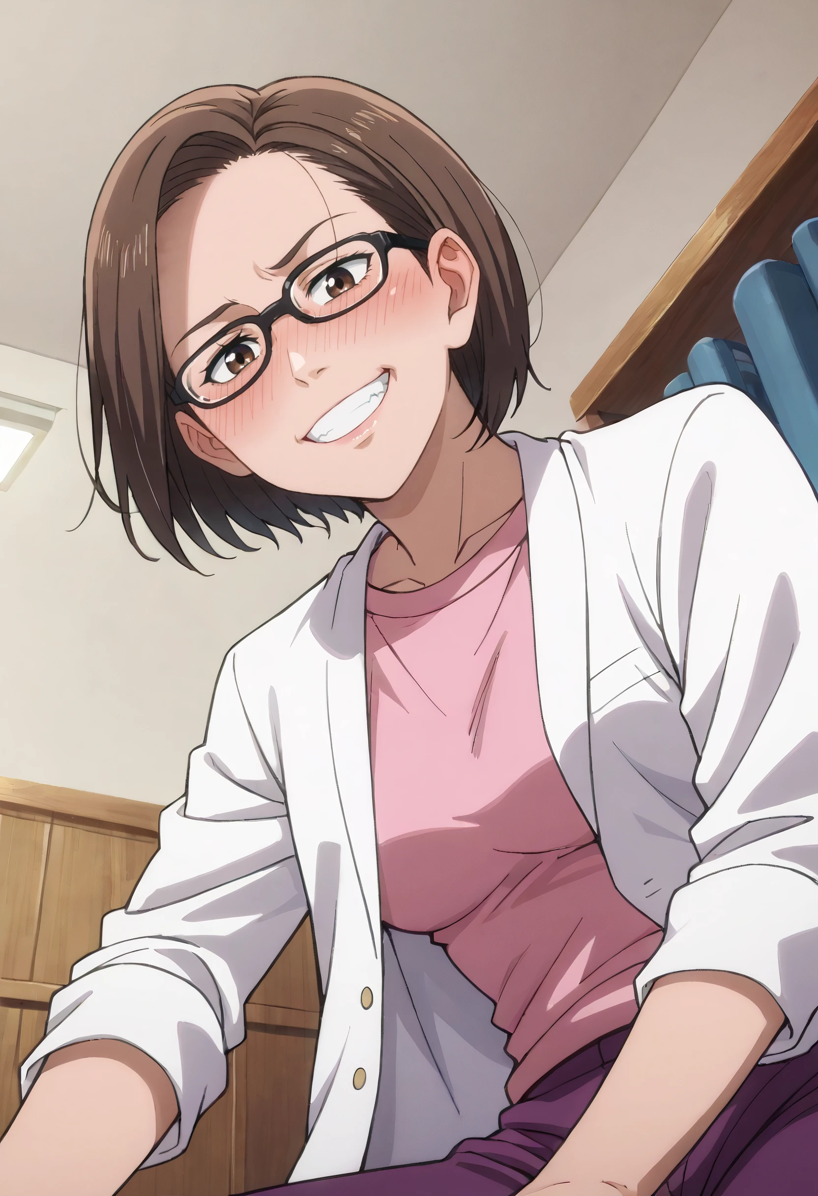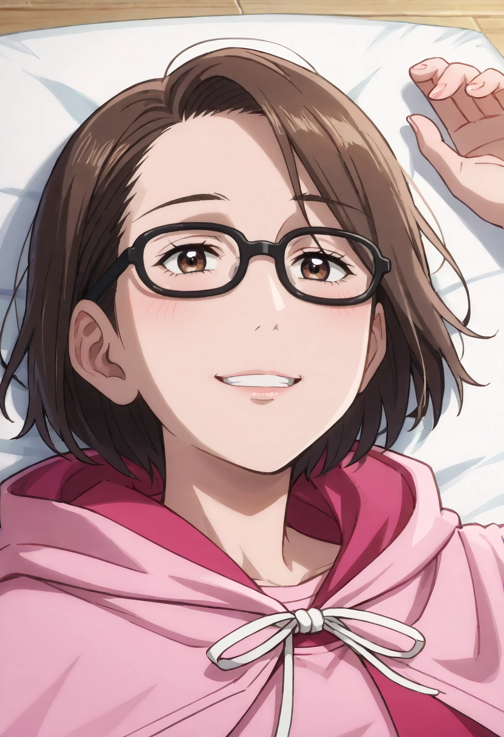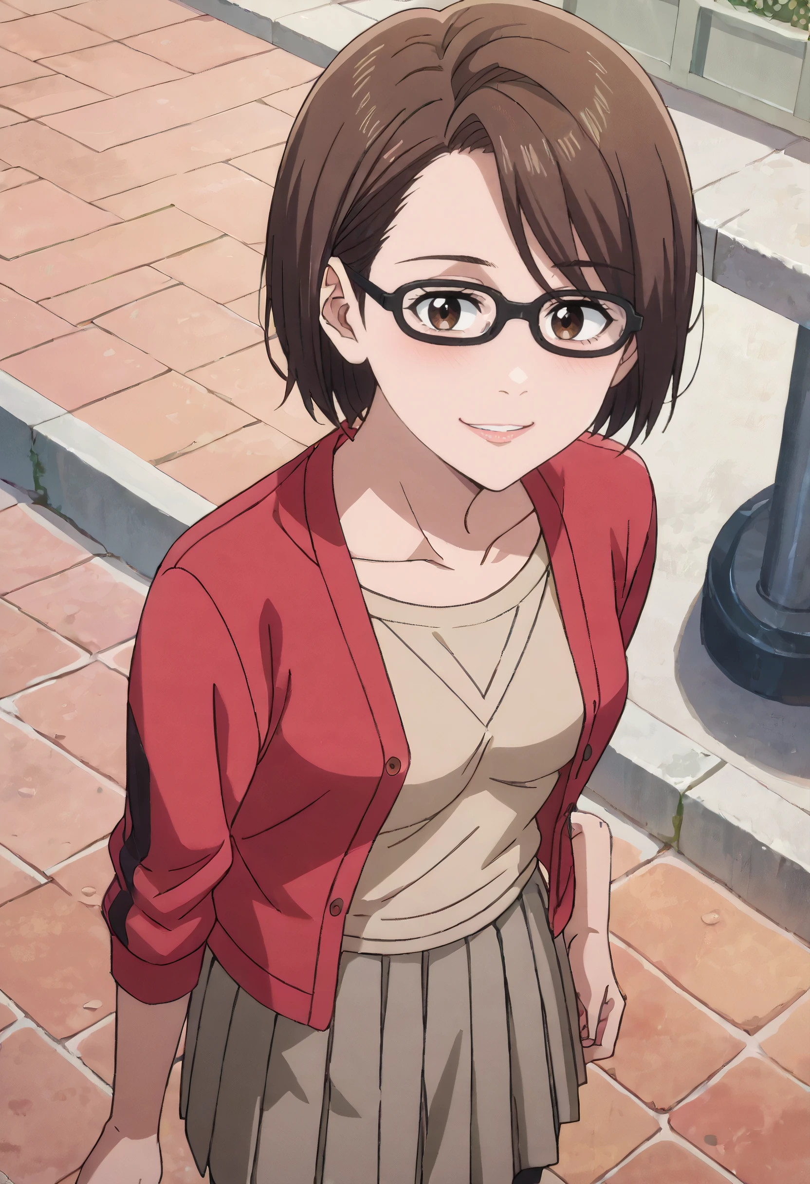 MHHKasen, brown hair, short hair, brown eyes, glasses, black-framed eyewear,