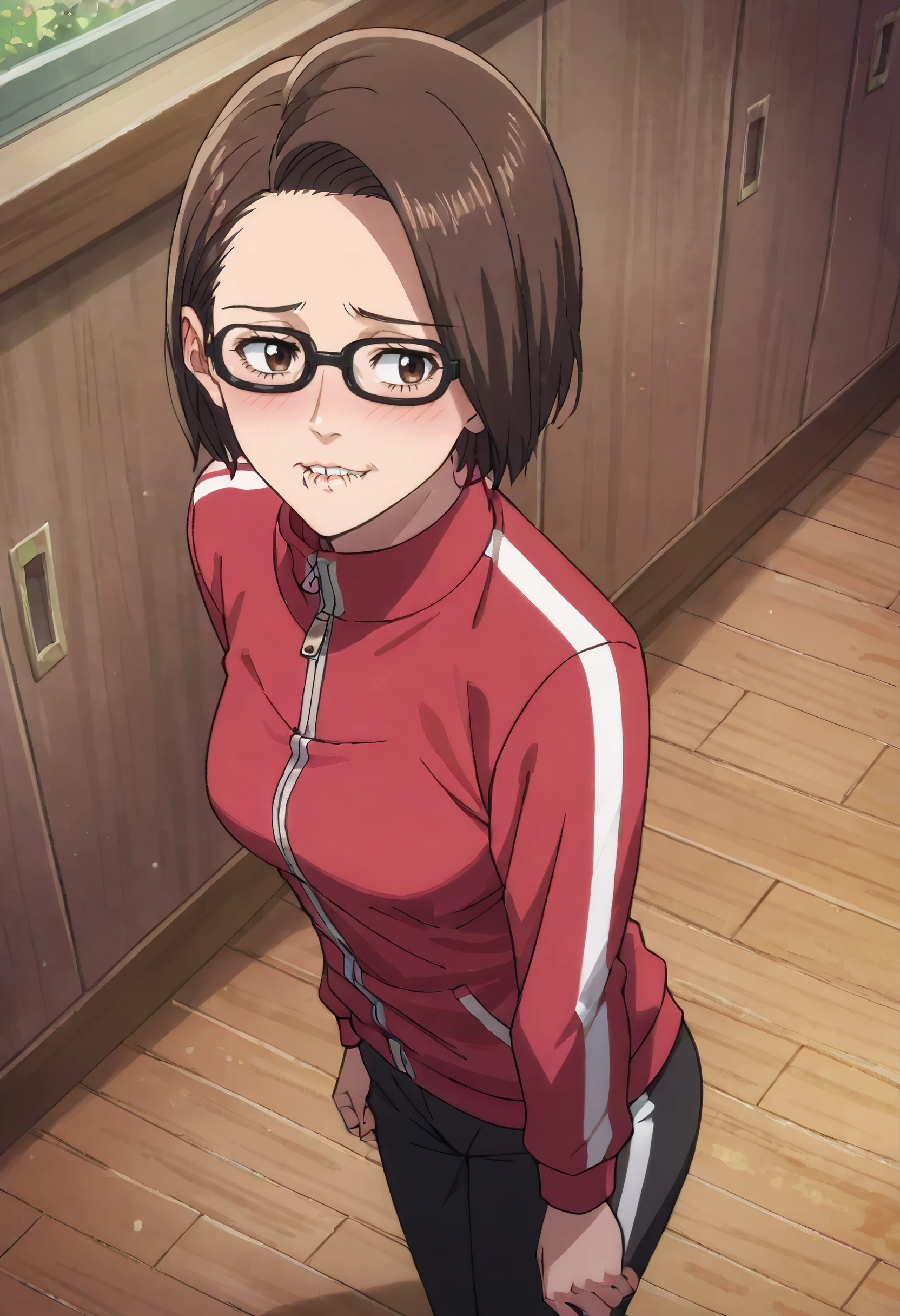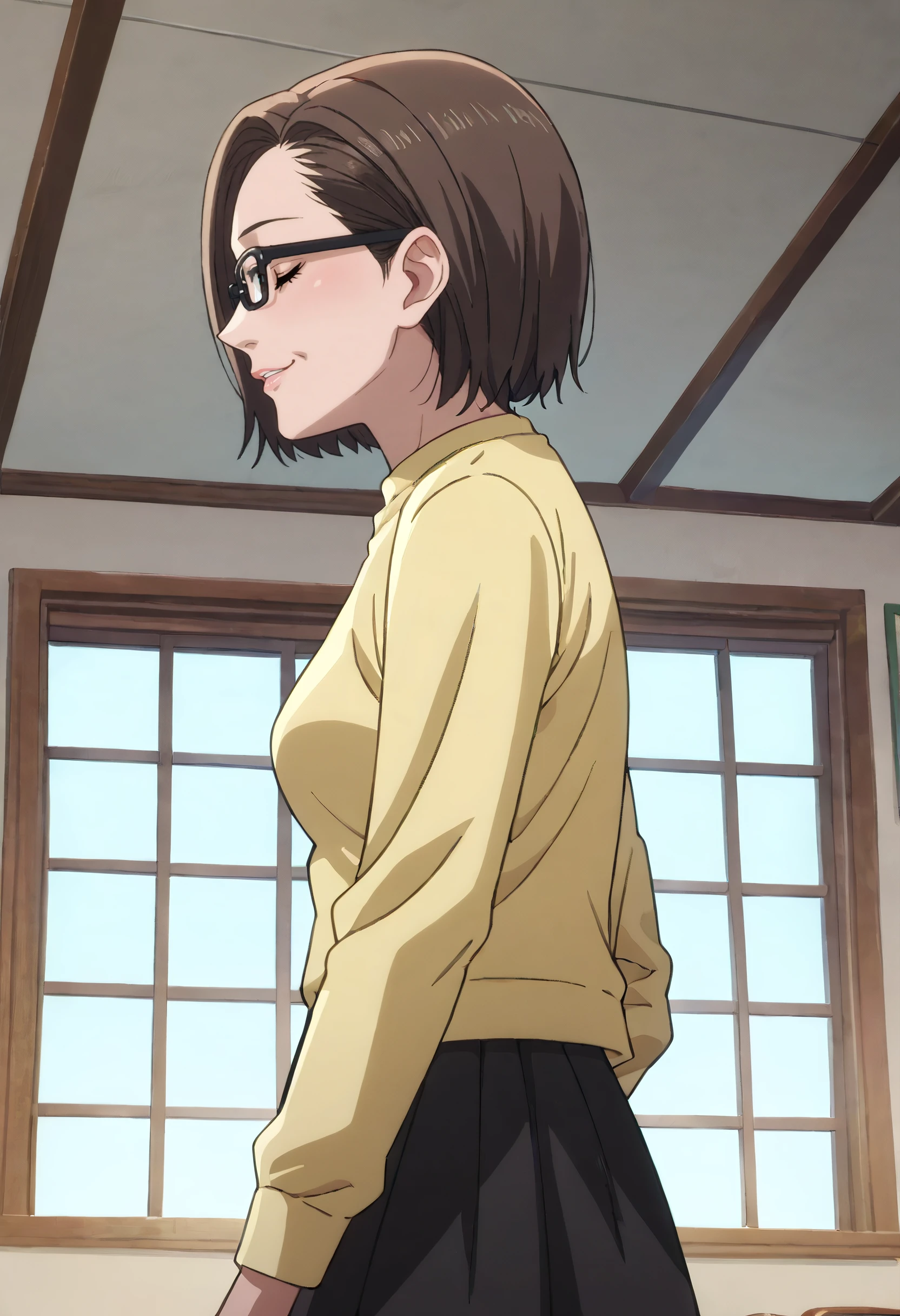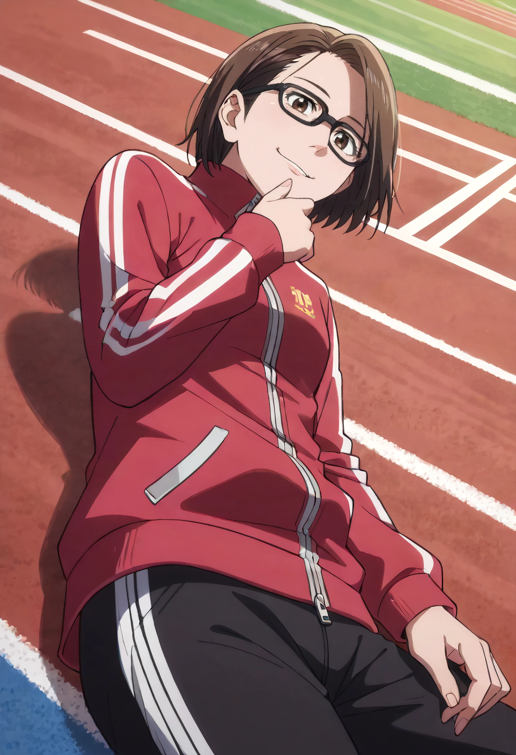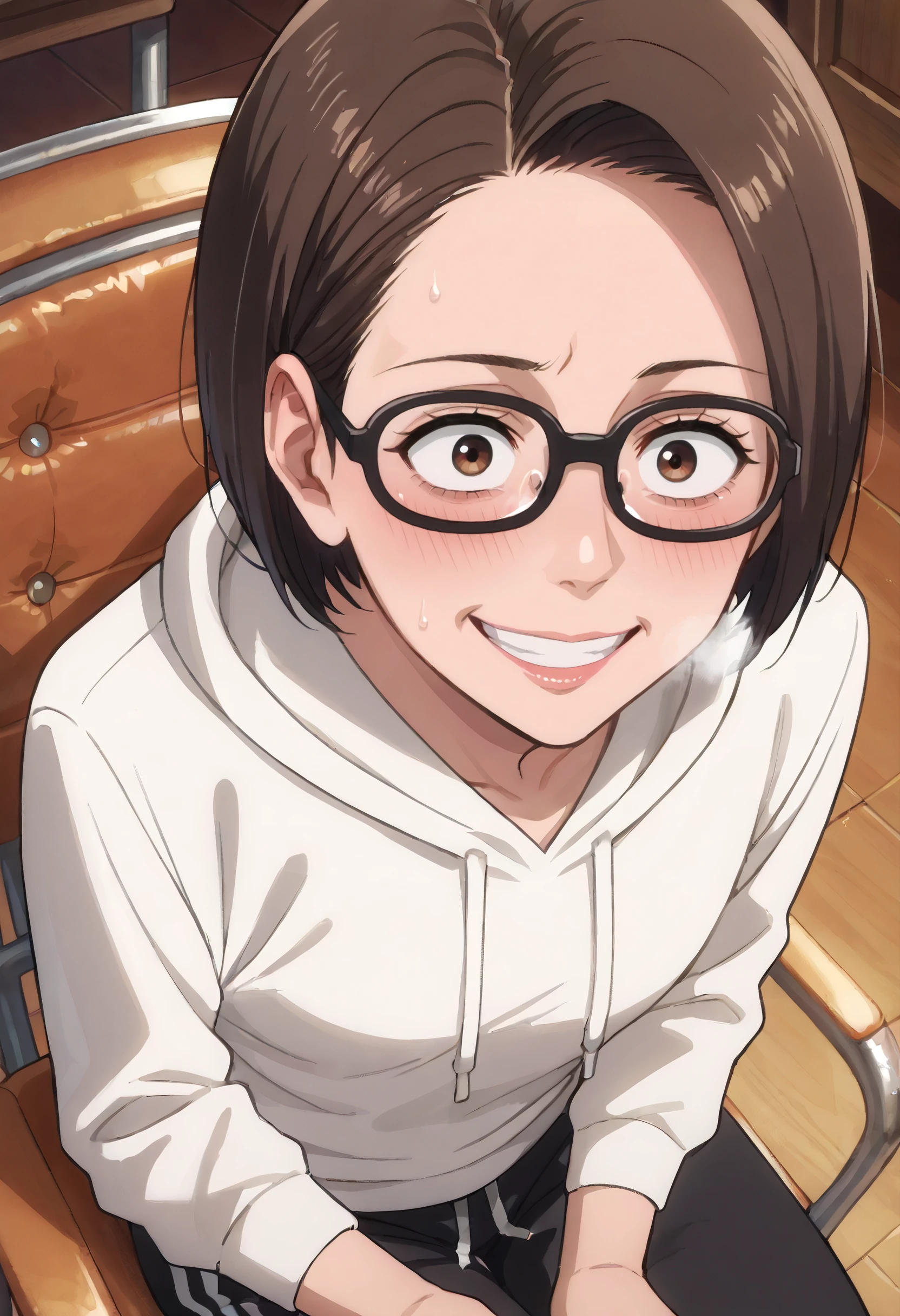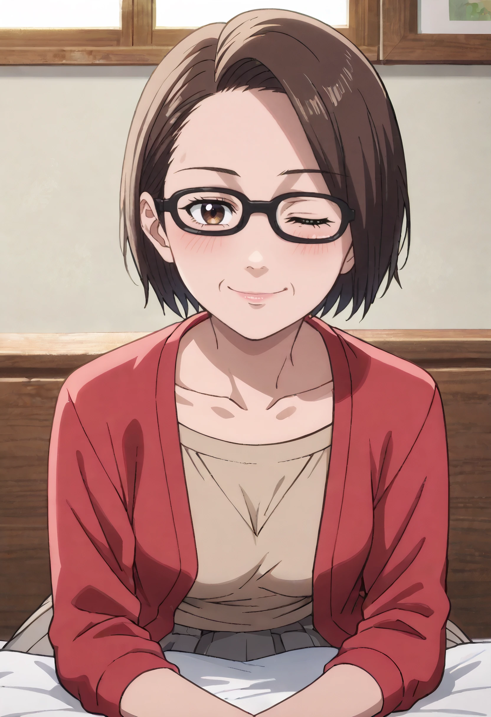 MHHKasen, brown hair, short hair, brown eyes, glasses, black-framed eyewear,