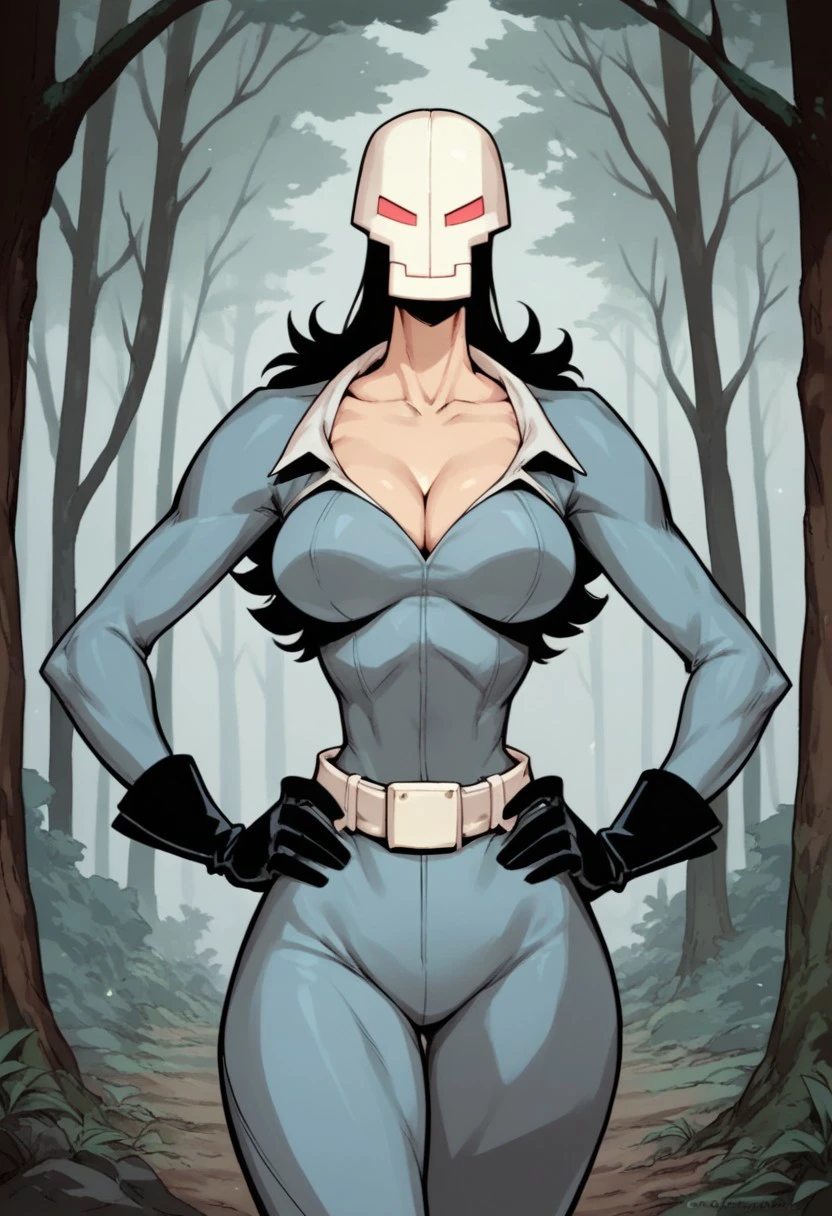 Blue Bodysuit, Belt, Black Gloves, Black Boots