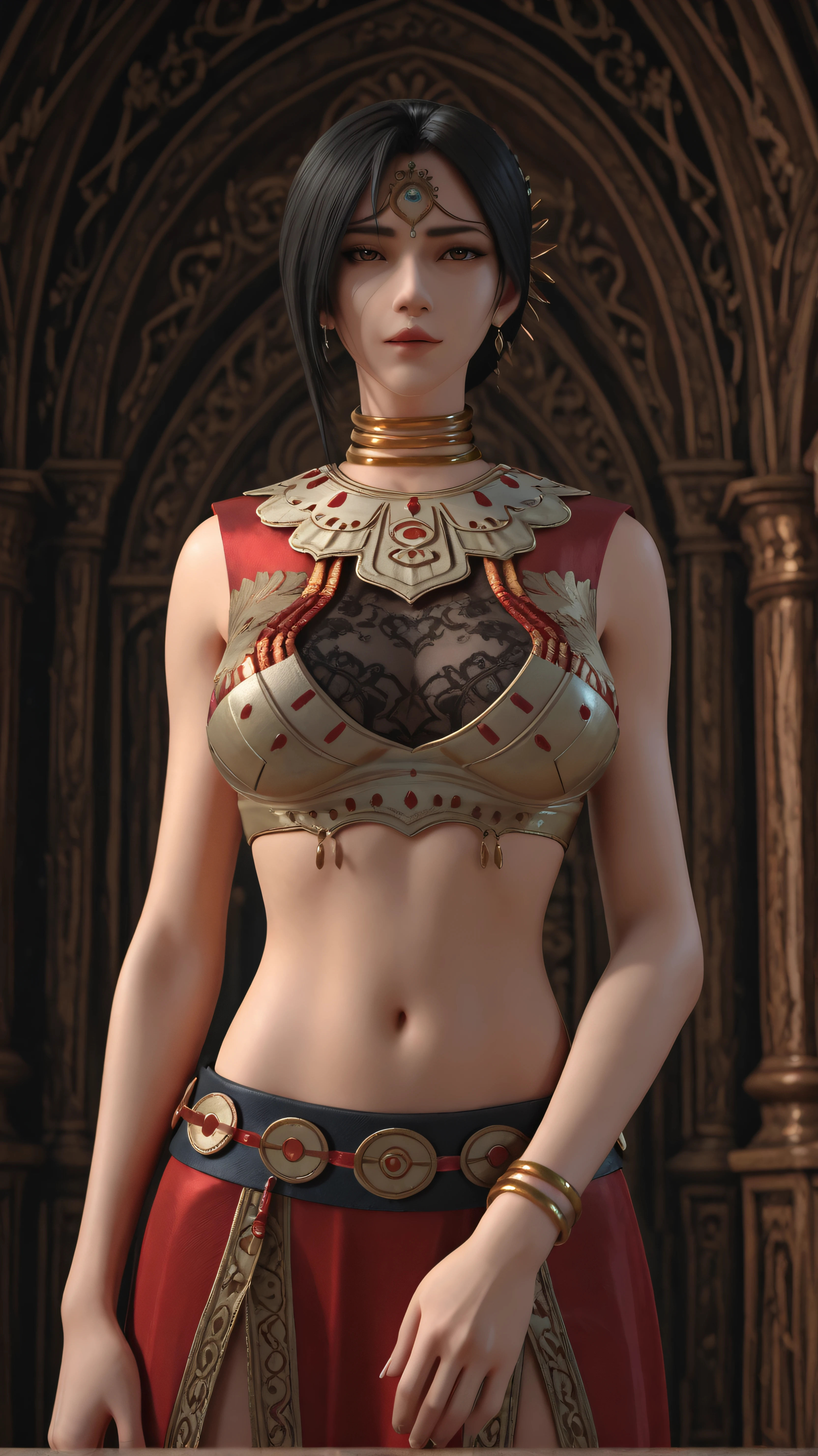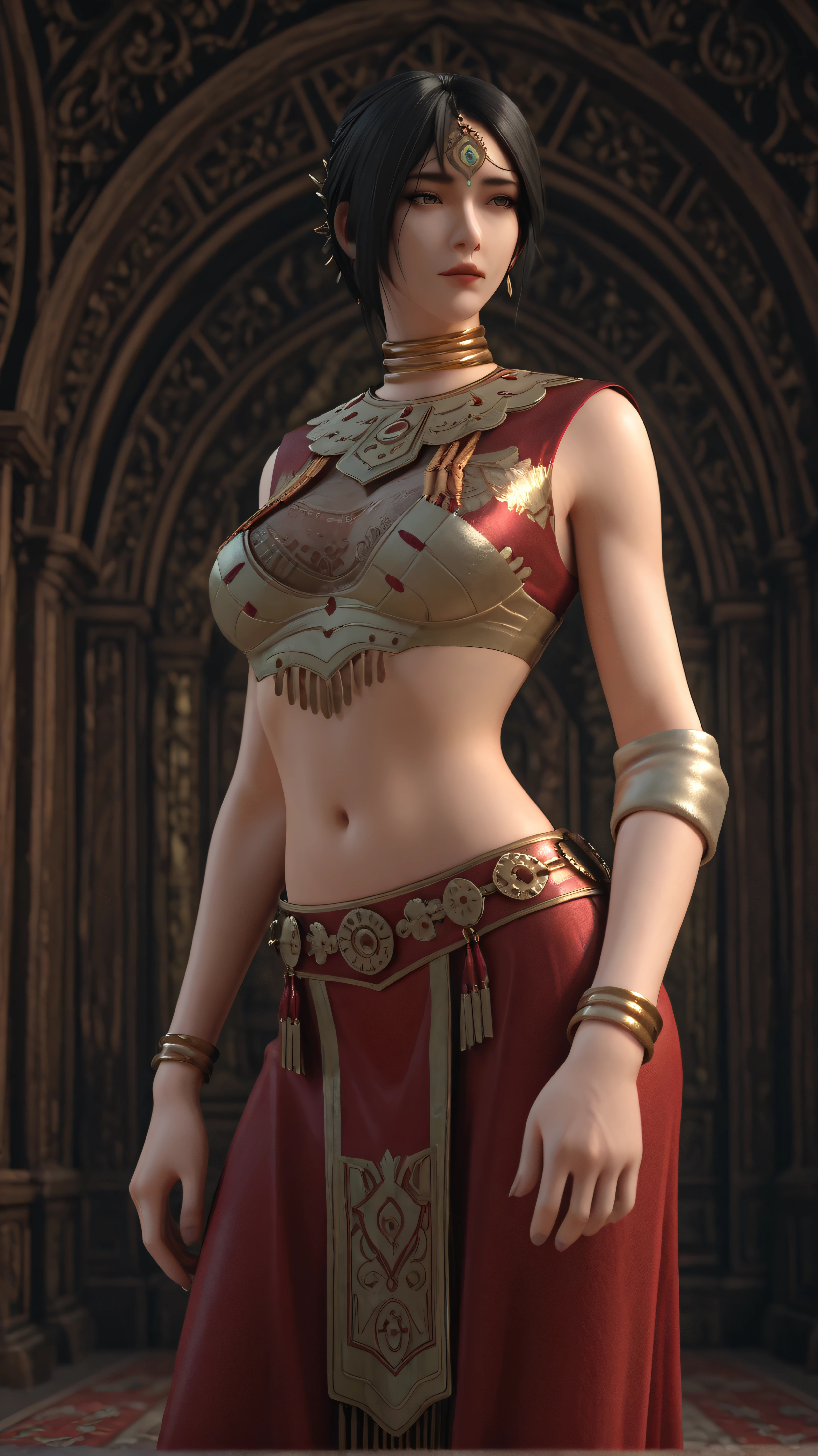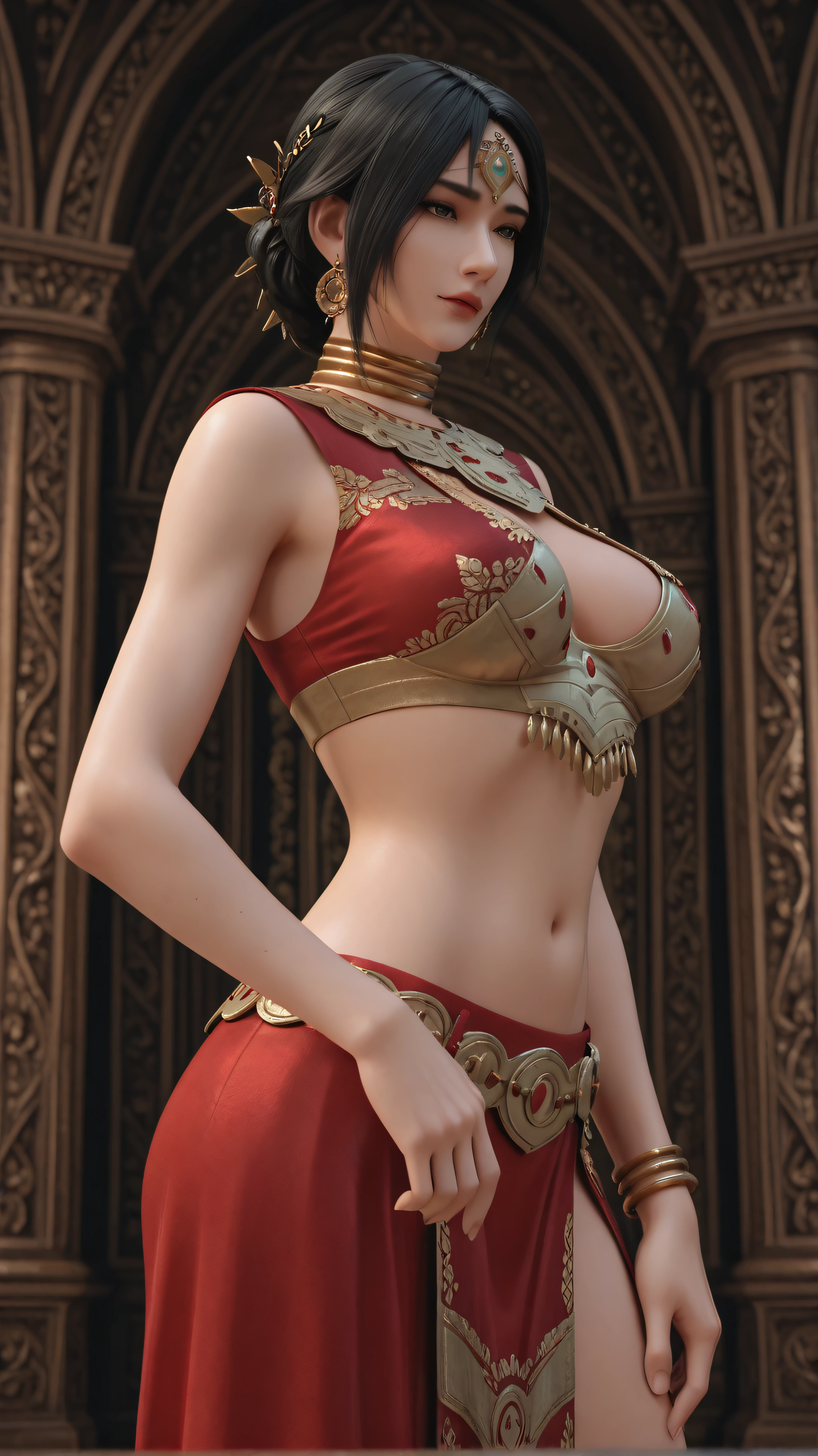 1. navel, bare shoulders, collarbone, midriff, stomach,see-through clothes,arabian clothes, harem outfit,pelvic curtain, crop top, panties,gold trim, jewelry,