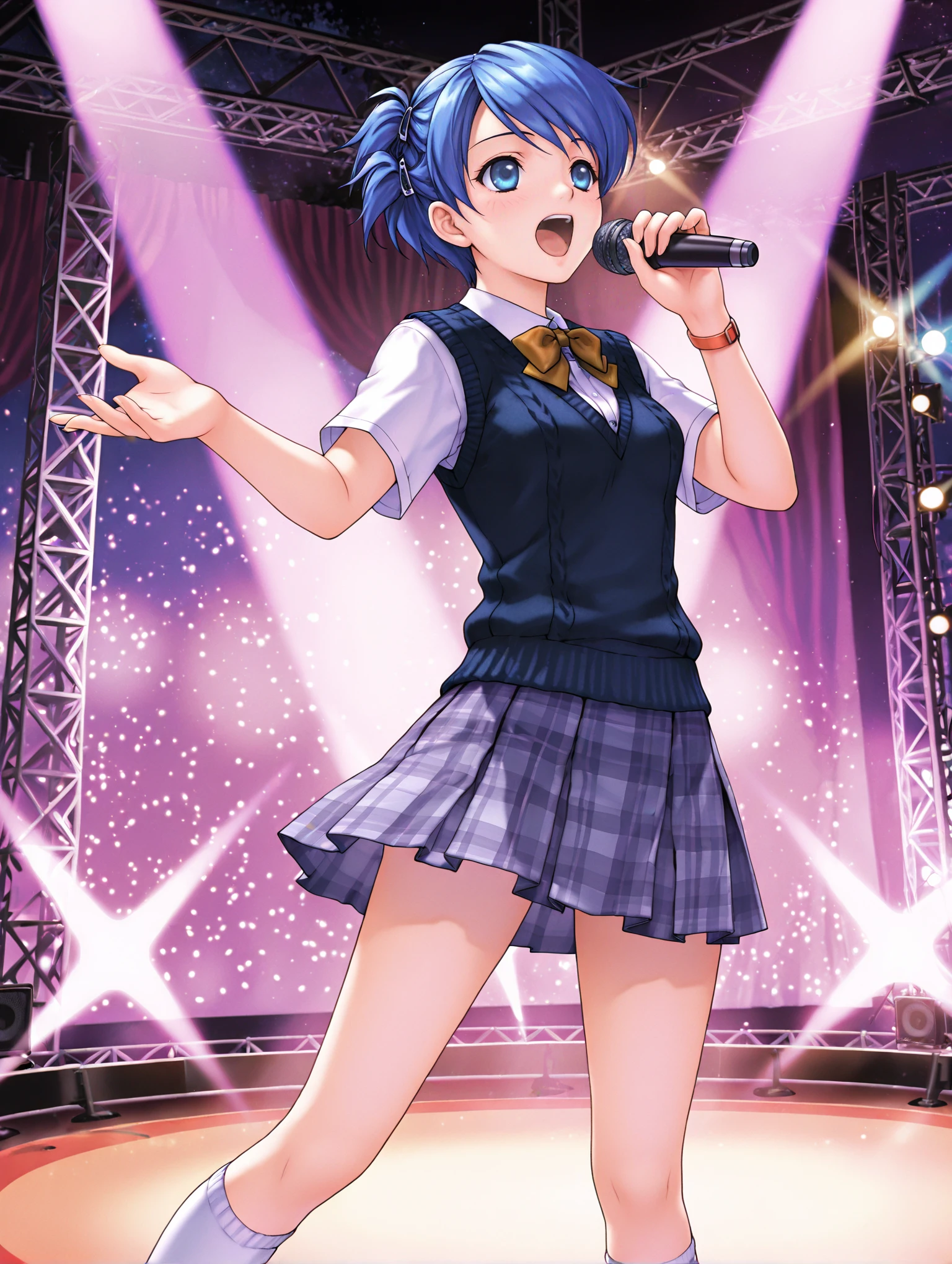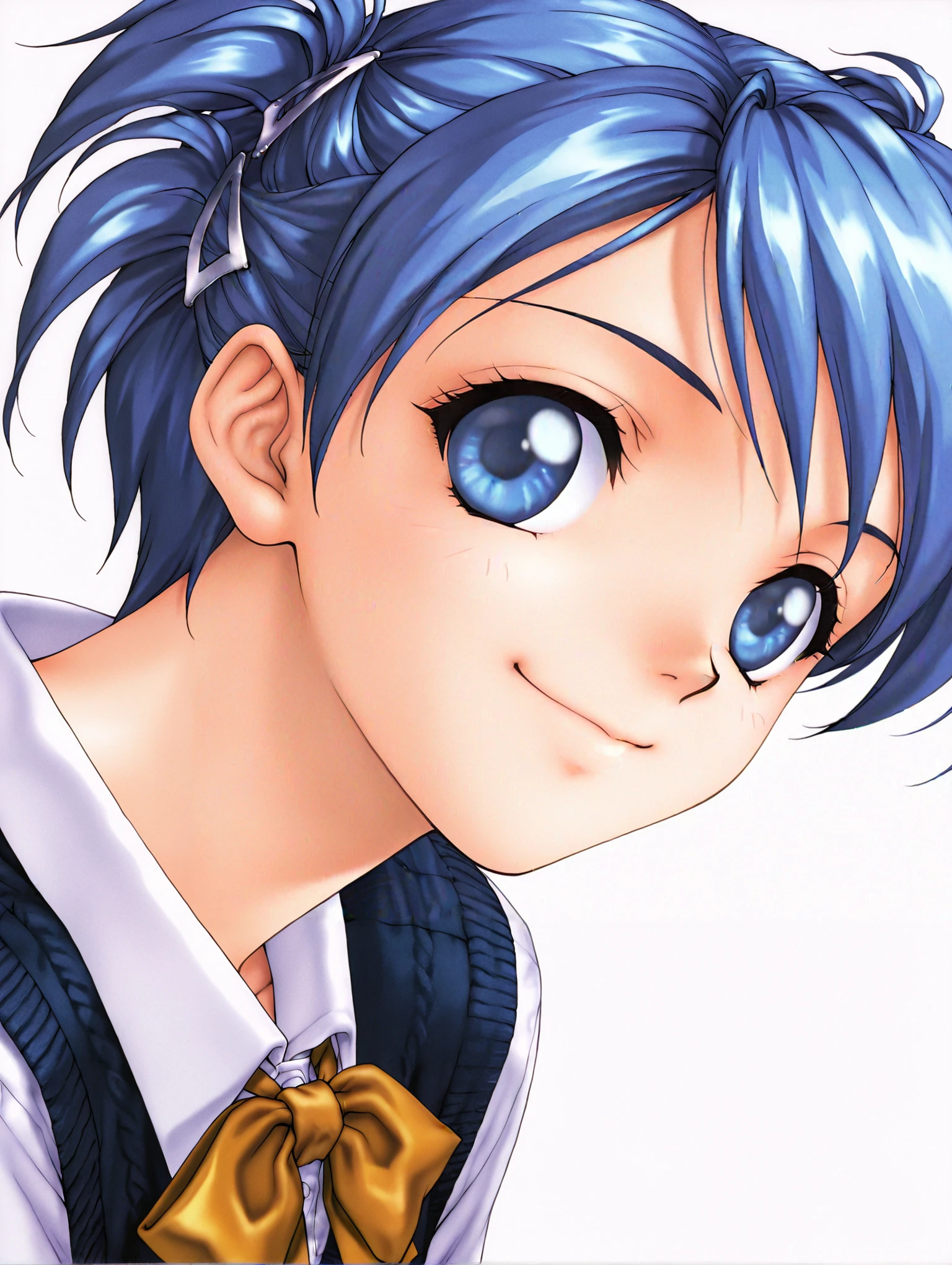 trigger: midorikawa fumiko_fw, blue hair , blue eyes, short hair , twintails