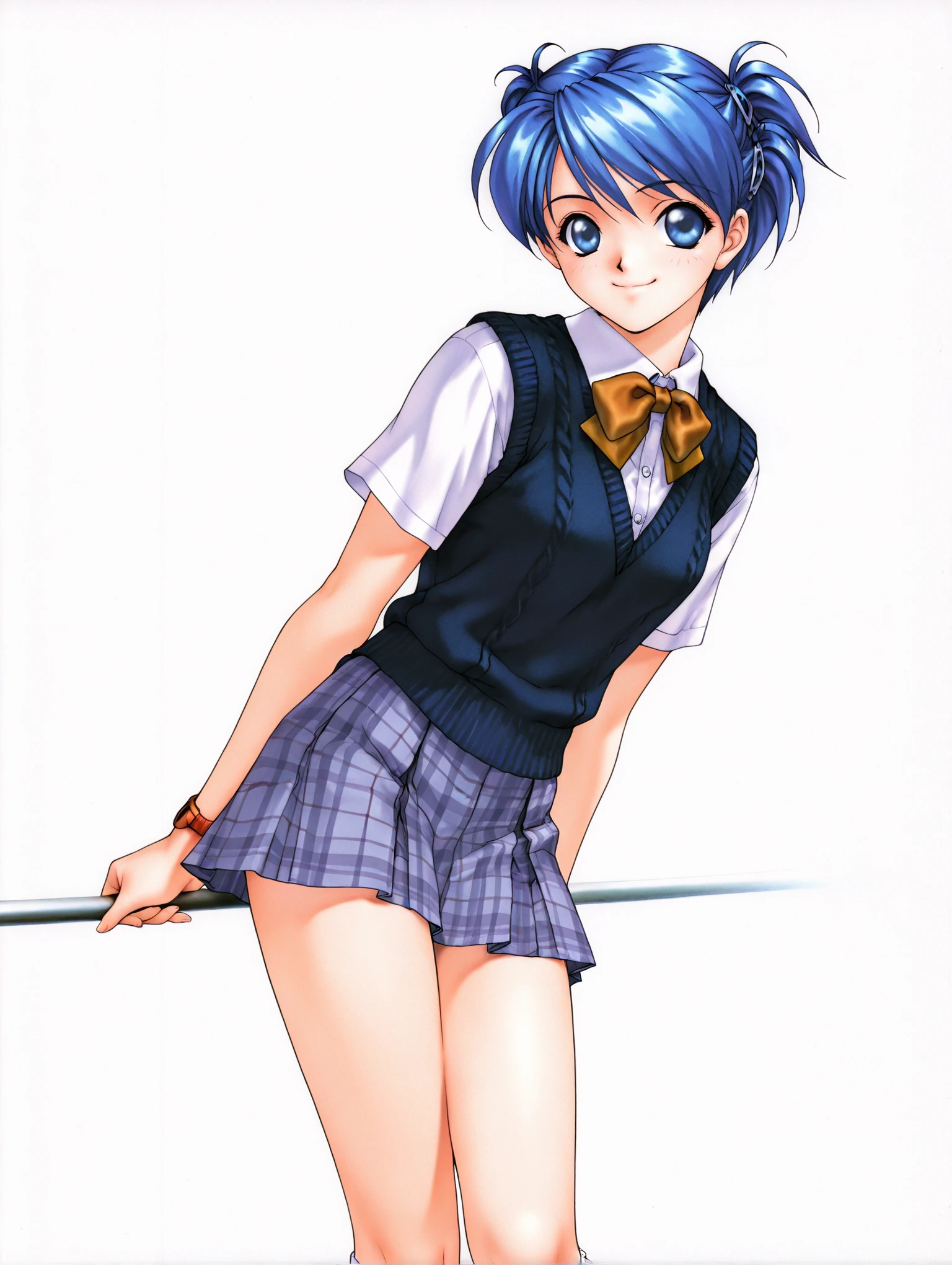 midorikawa fumiko_fw, blue hair, blue eyes, short hair, twintails