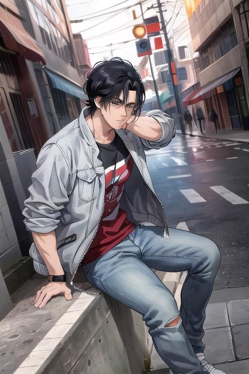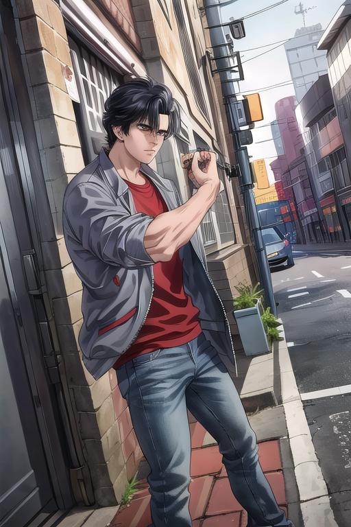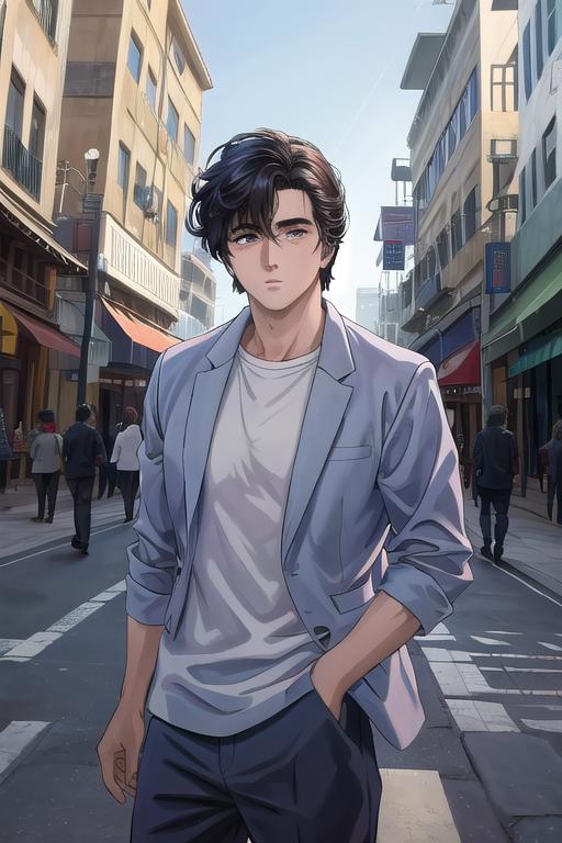 Ryo Saeba from City HunterIt's a little bit tricky to get the face correct (notably eyes), I recommend to inpaint the head after the generation.