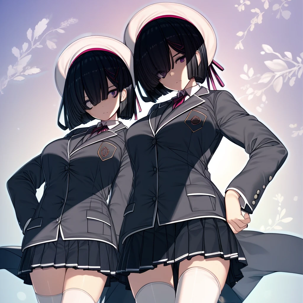 Hina sakurai, black hair, short hair, hat, school uniform, black skirt, normal thighhighs,