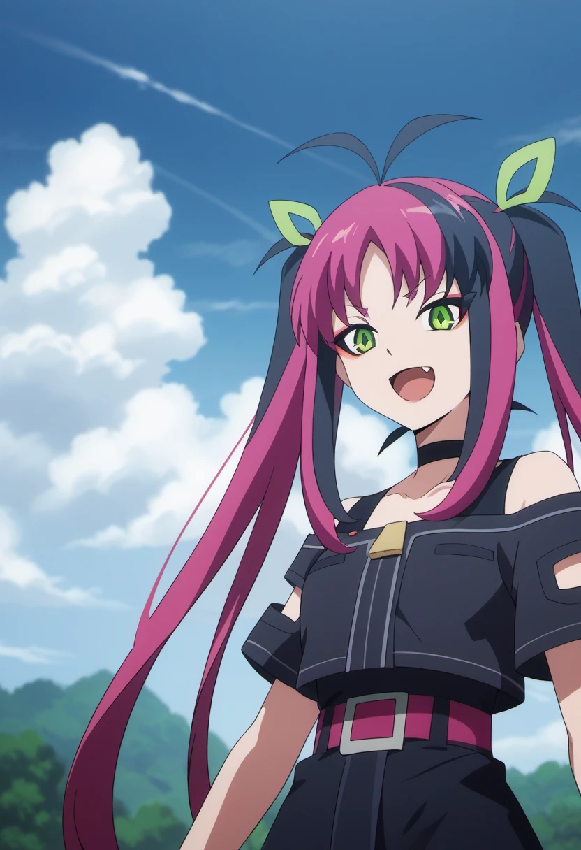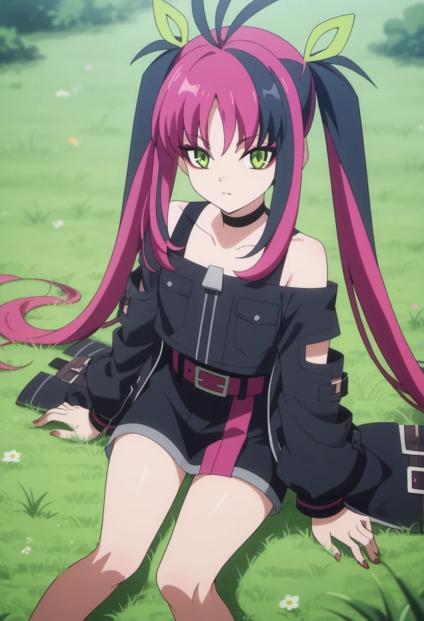 Trigger Words: sinclair hina (shadowverse flame), long hair, purple hair, black hair, multicolored hair, green eyes