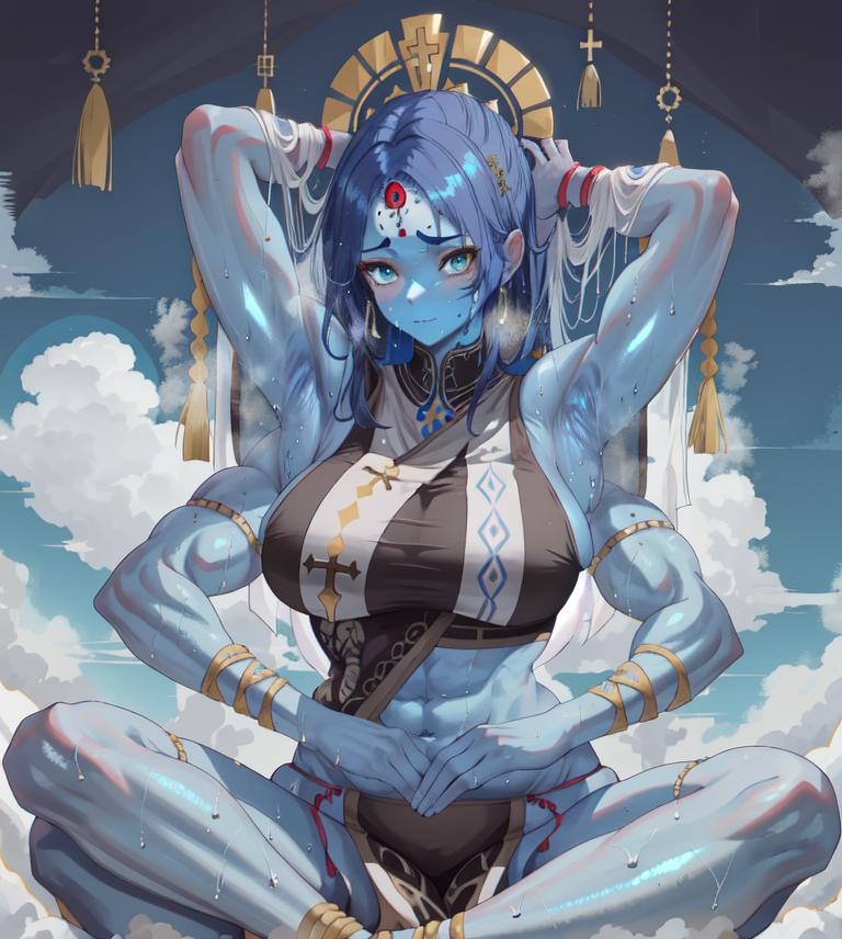 Gives girls 4 arms, give or take. It lightly supports extra parameters like: from behind, top hands out, bottom hands out, top hands on face, top hands on head, bottom hands on hips, top hands covering breasts. It leans heavily into putting the top arms behind the head, so if you're not looking for that throw (t2up, top hands on head) in the negative prompt.