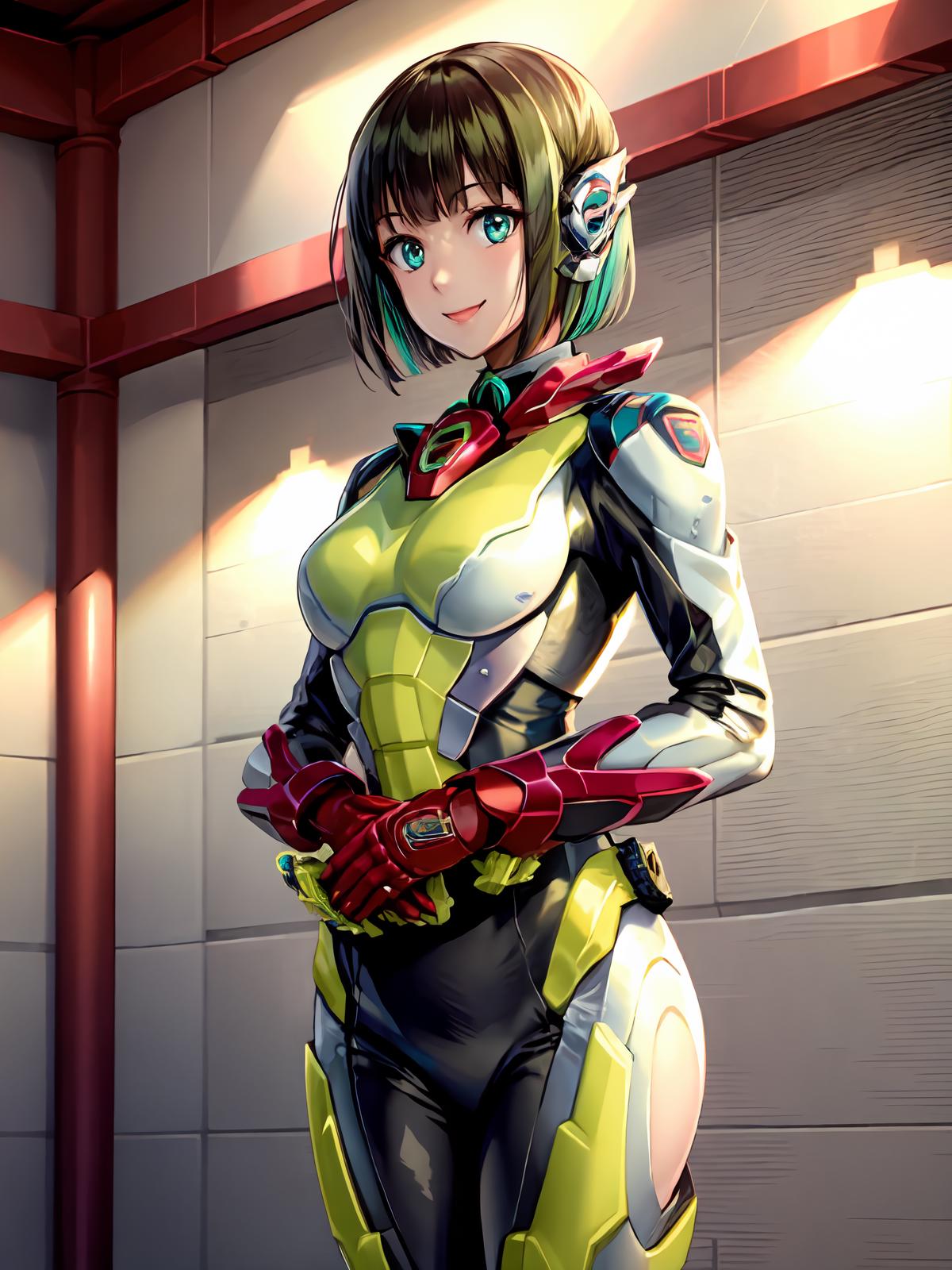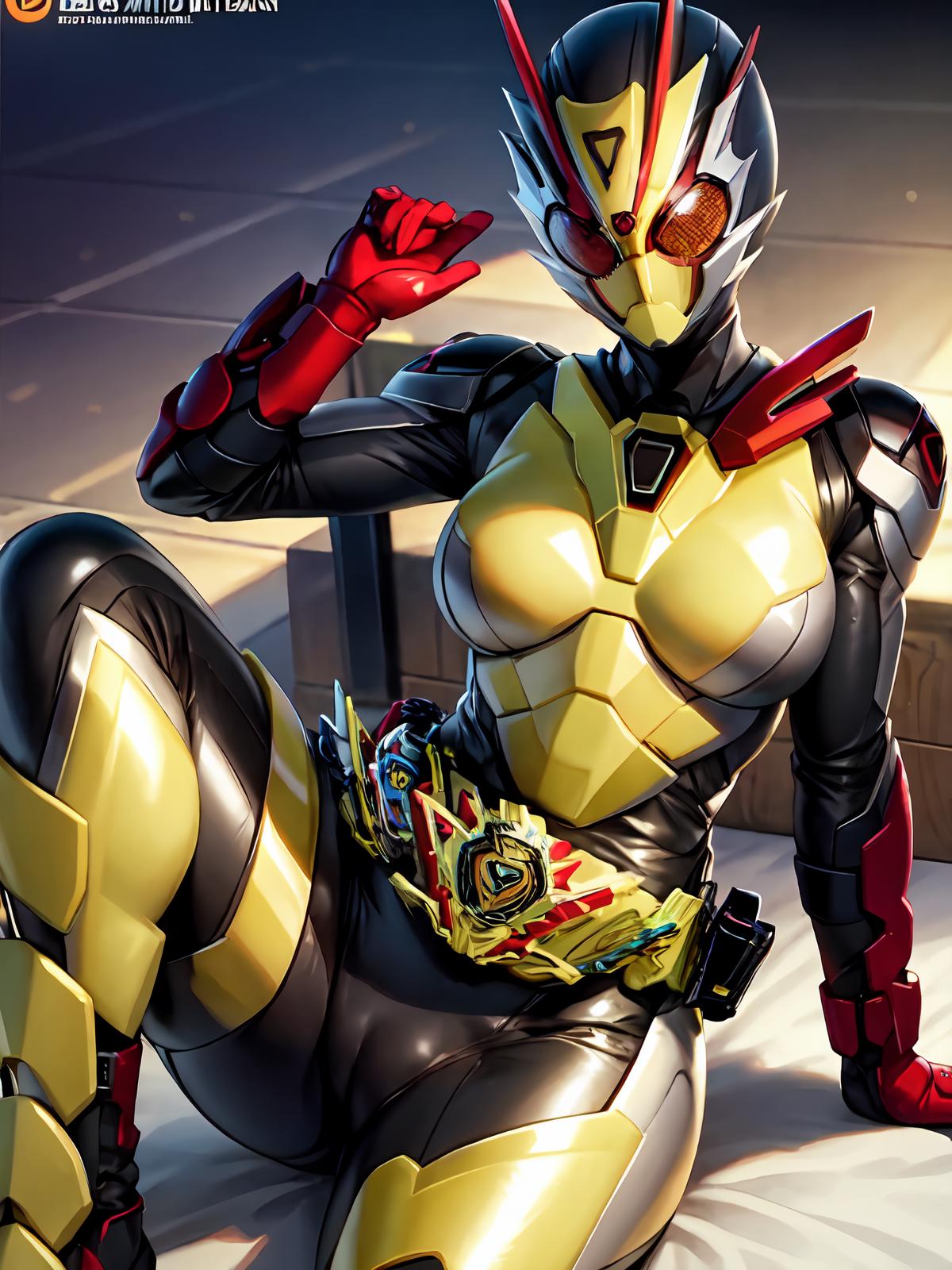 Prompts: belt,helmet,mask,armor, bodysuit,armor,gloves, black bodysuit, red gloves