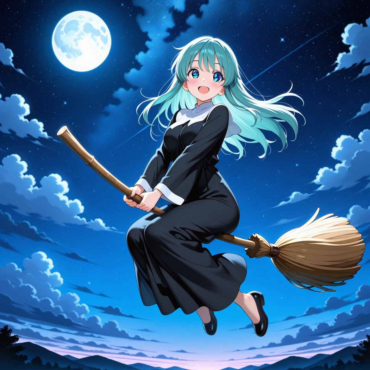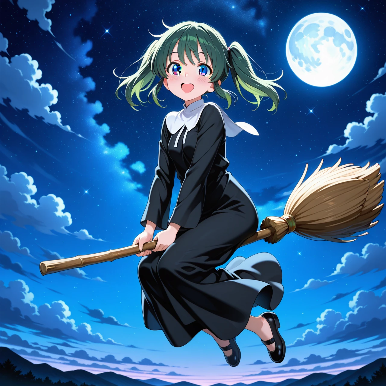 holding broom, broom, broom riding, flying,