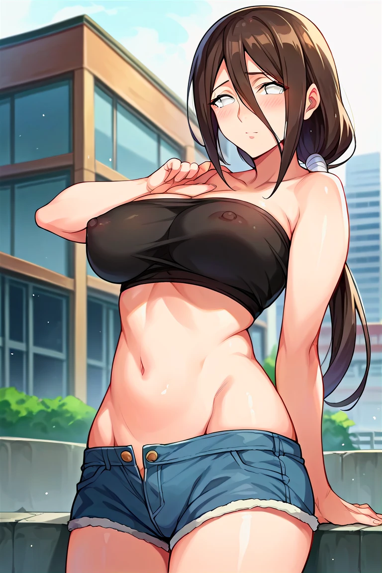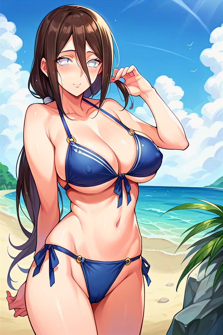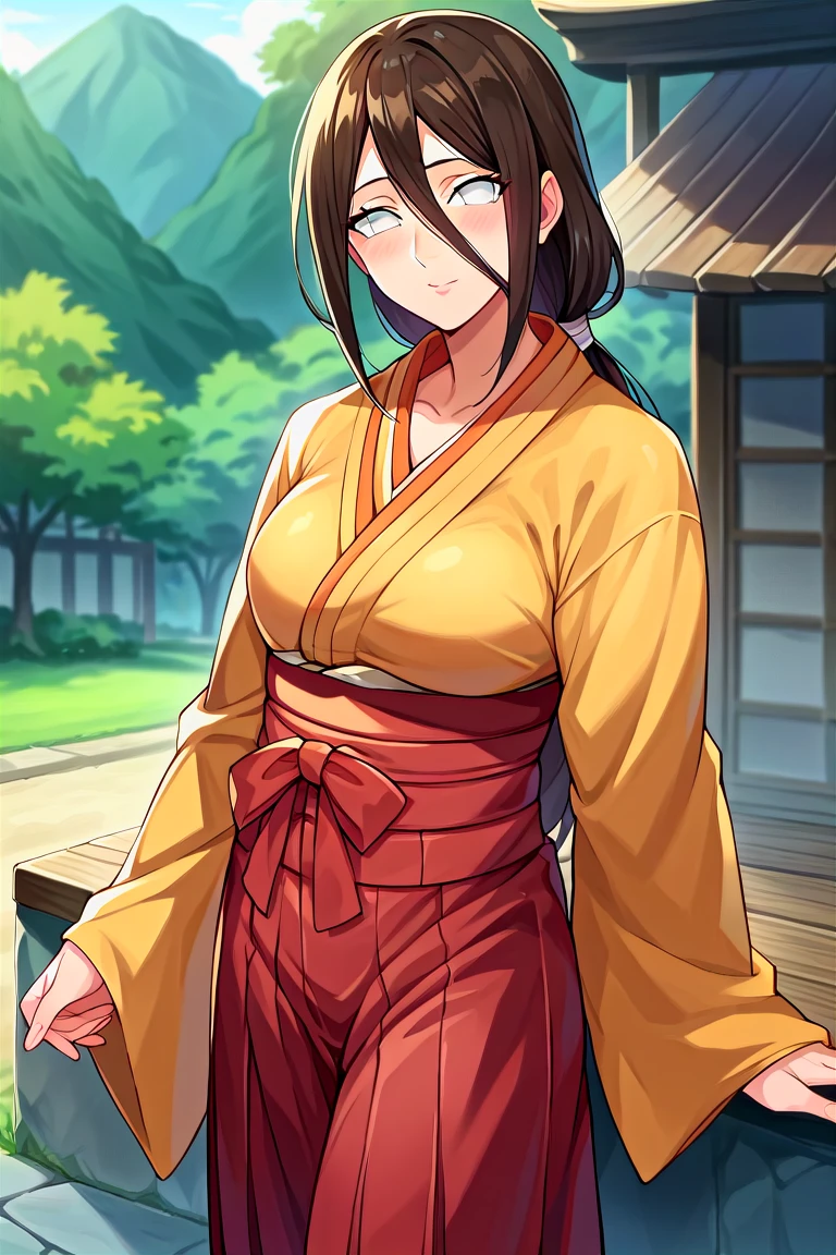 Trigger Words: ``hanabi, brown hair, white eyes, hair between eyes, low ponytail,``