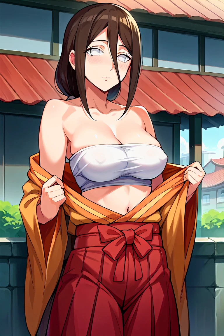 For Clothing: ``japanese clothes, kimono, red hakama, hakama skirt,``
