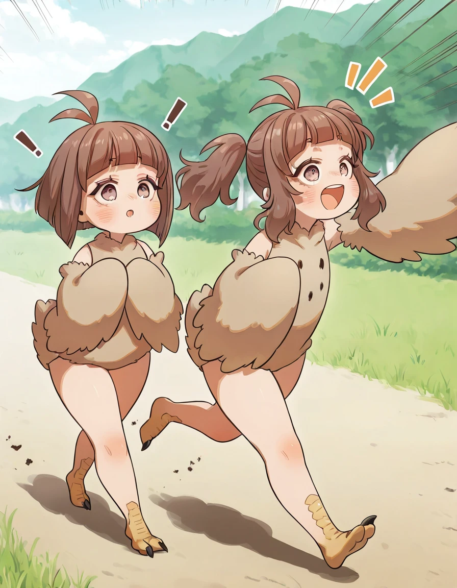 Rhythmchan, twintails, blunt bangs, ahoge, birdchan, monster girl, winged arms, harpy, bird feet,