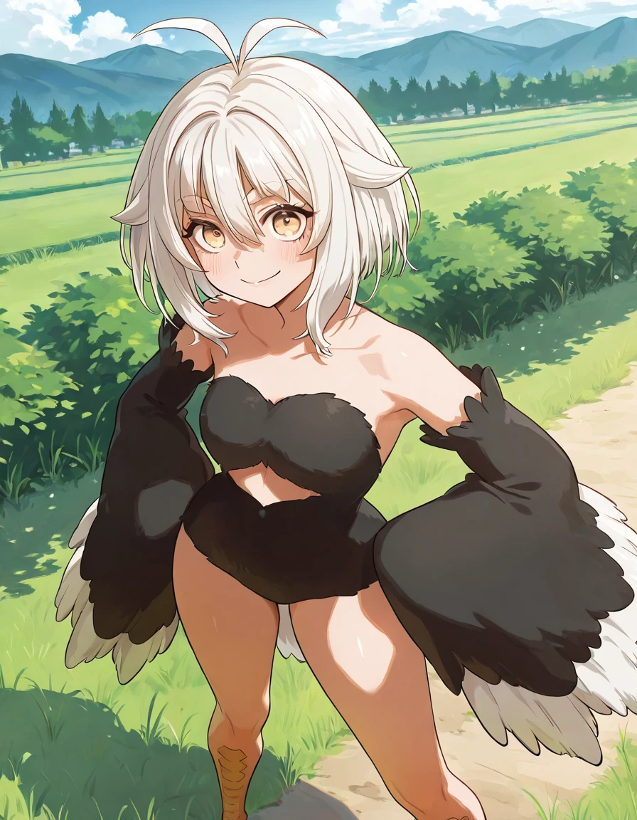 Reisuchan, short hair, ahoge, monster girl, winged arms, bird legs, harpy