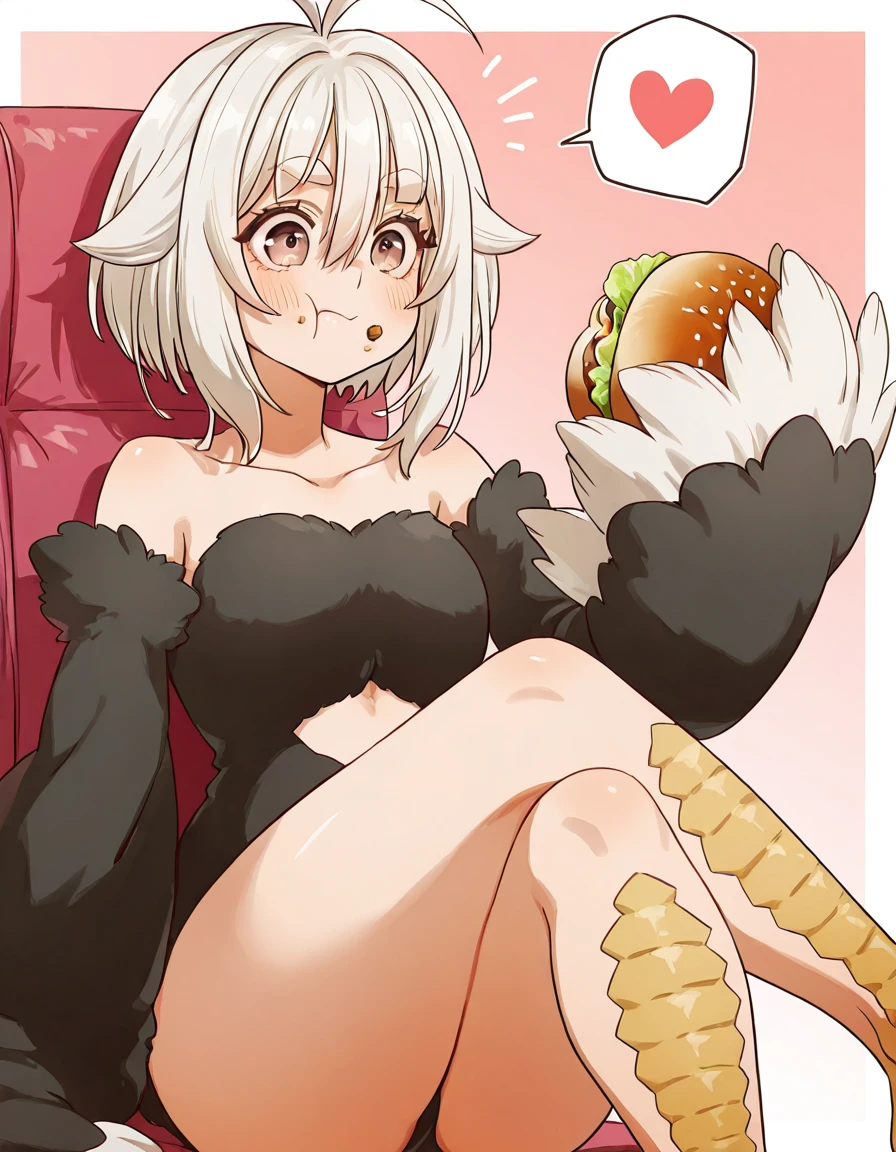 Derechan, short hair, blunt bangs, ahoge, birdchan, monster girl, winged arms, harpy, bird feet,