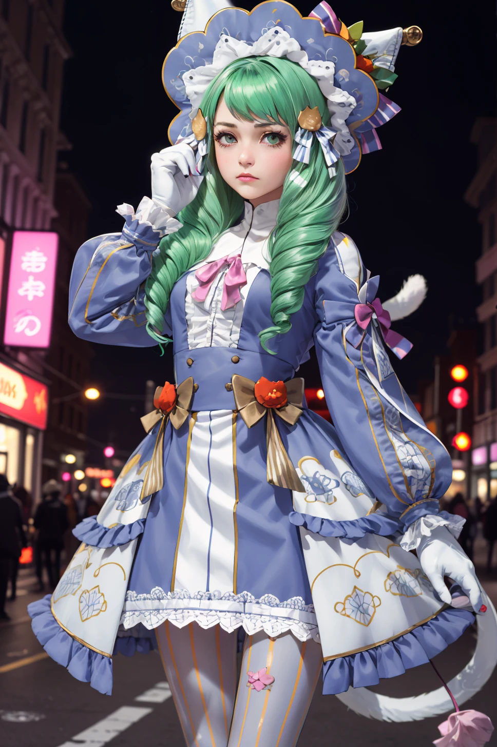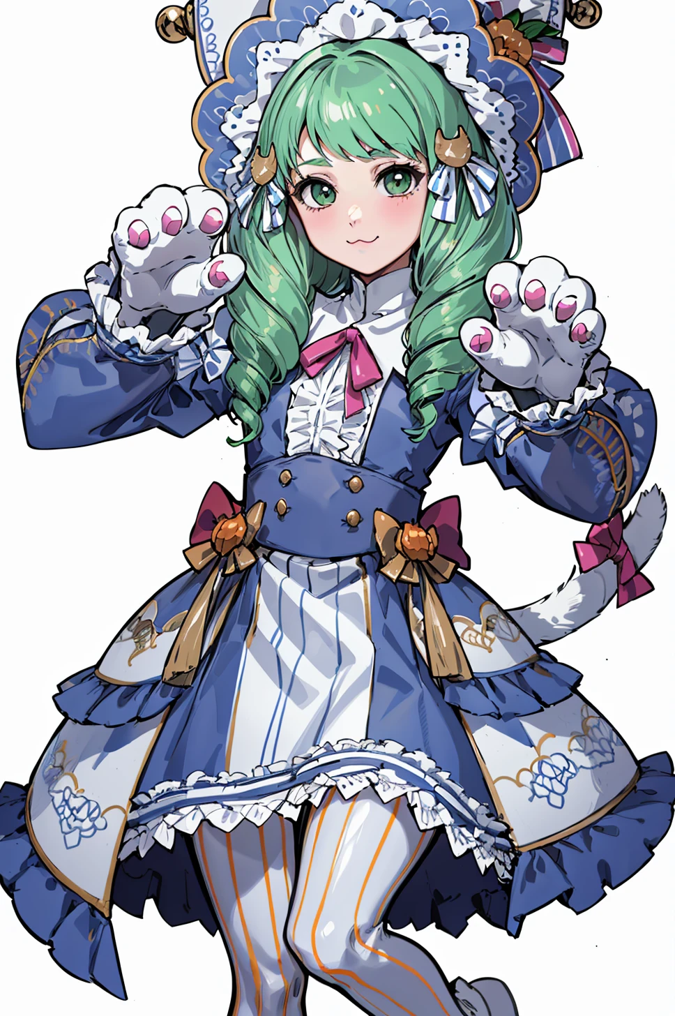 • More outfit keywords, add as needed: hair ornament, white gloves, animal hands, cat paws, long sleeves, hat, dress, pink bow, tail, striped pantyhose, frills, striped, cat ears, cat tail, bell, drill hair, tail ornament, tail bow, paw shoes