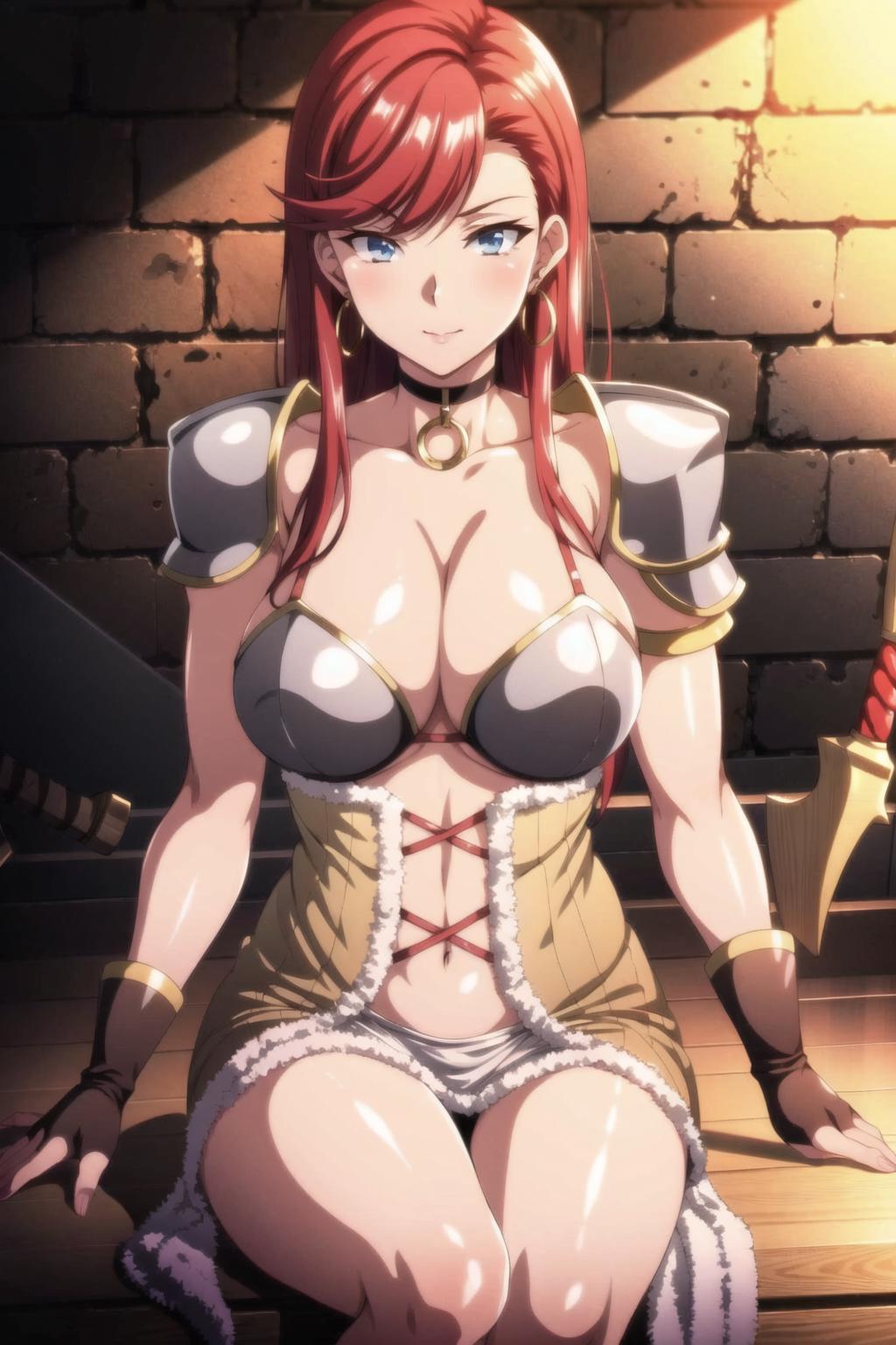onnasenshi, long hair, red hair, earrings