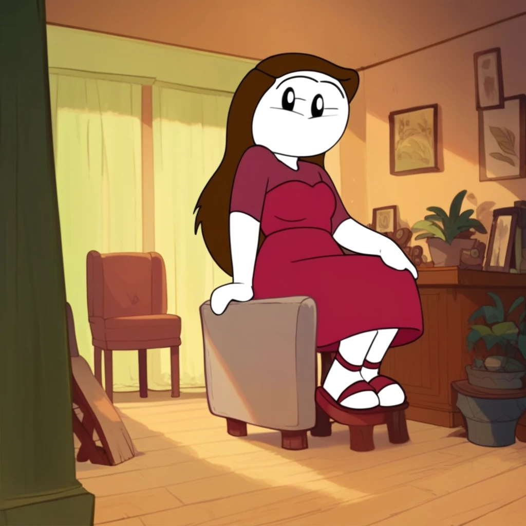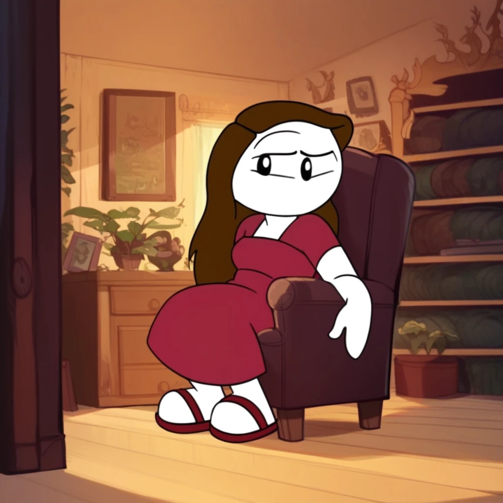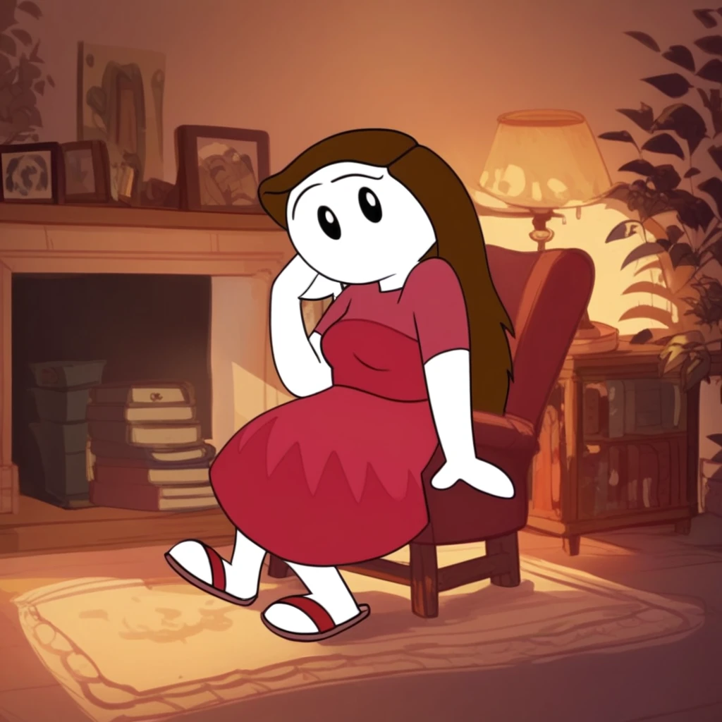 Score_9, score_8_up, score_7_up, 1girl, Rebecca Parham, white skin, no mouth, brown hair, long hair, black eyes