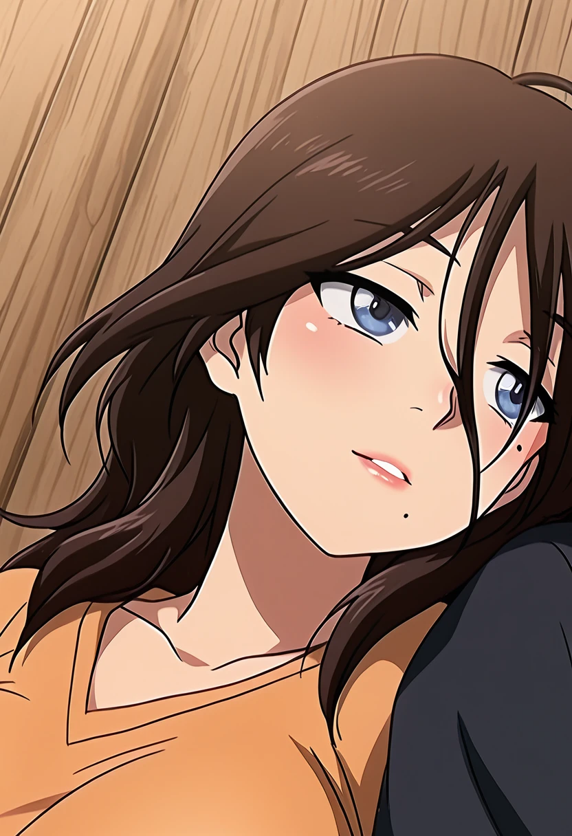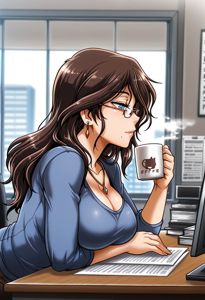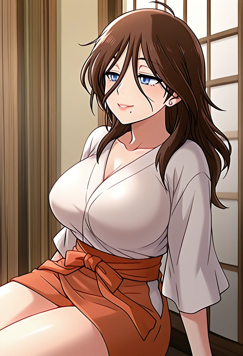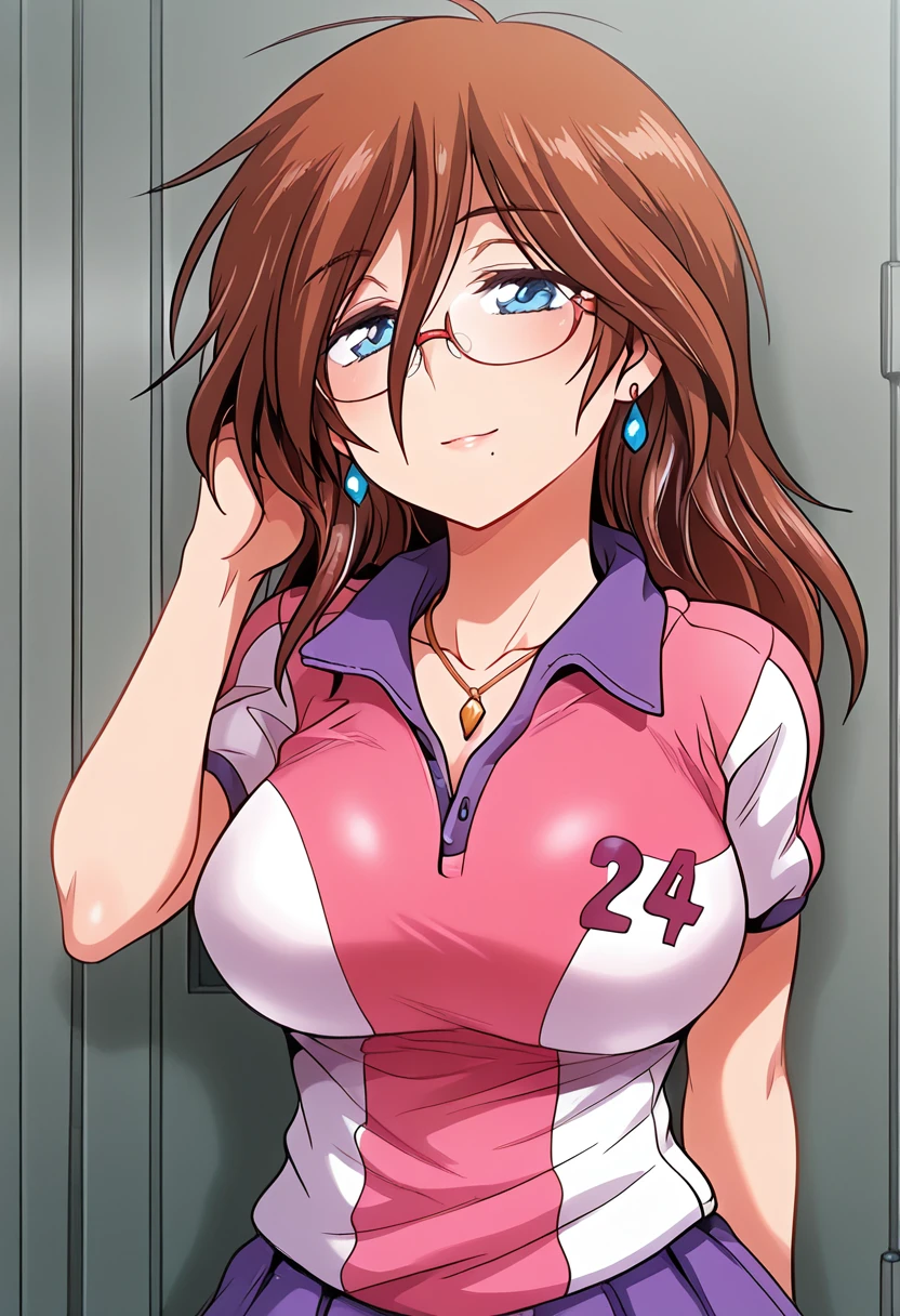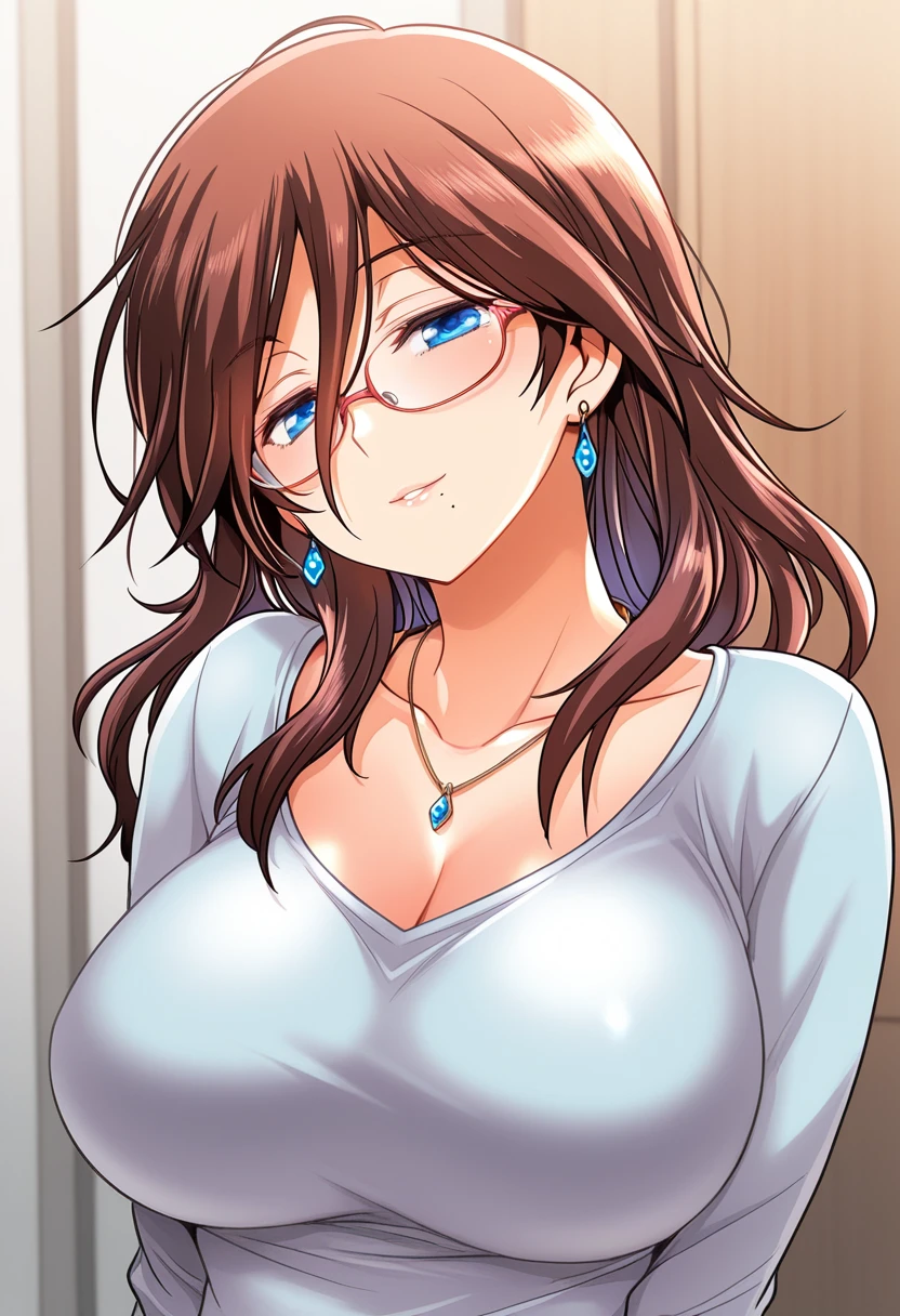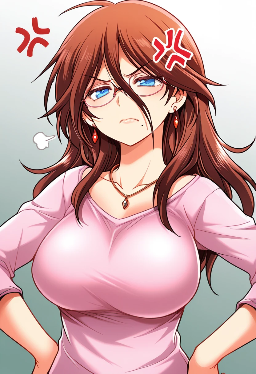 trigger words: satsuki raimu, 1girl, brown hair, long hair, blue eyes, glasses, mole under mouth, large breasts,