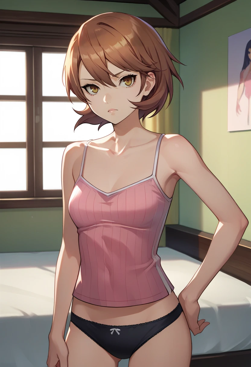 Default Outfit: yukaridef, gekkoukan high school uniform, pink cardigan, red bow, long sleeves, black skirt, earrings, white choker