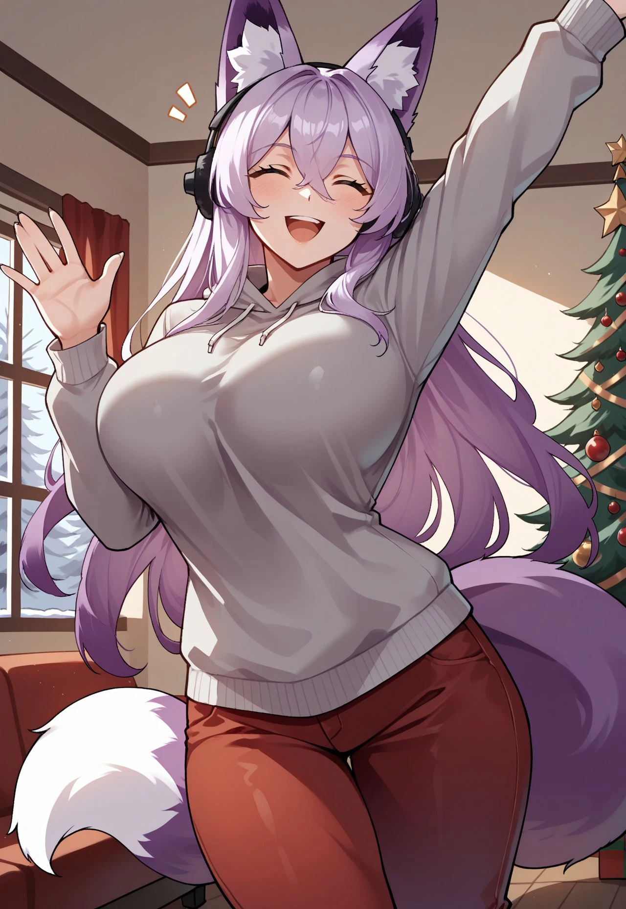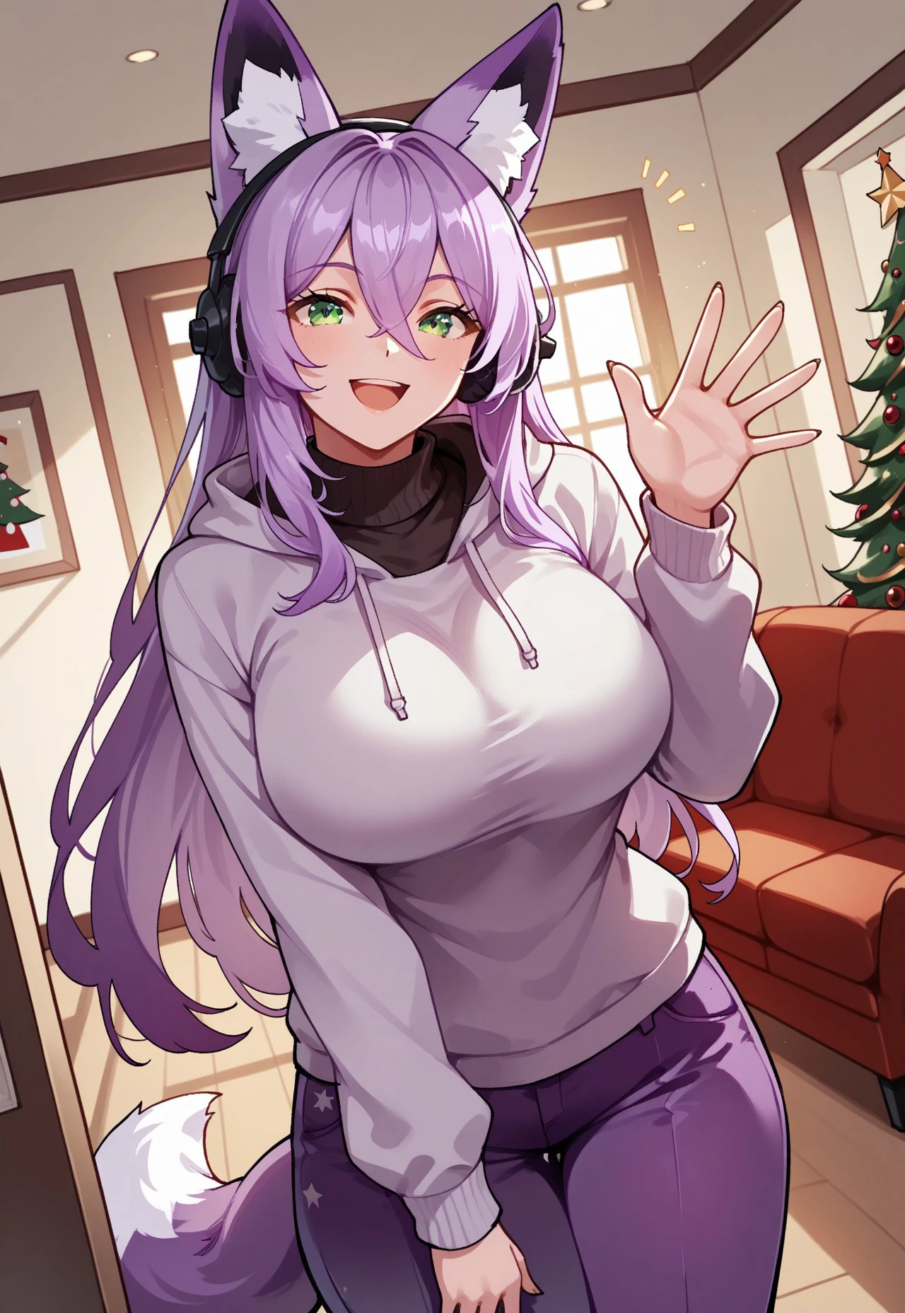 She often wears black headphones, so put 'black headphones' in negative prompts if you don't want them showing up on their own.