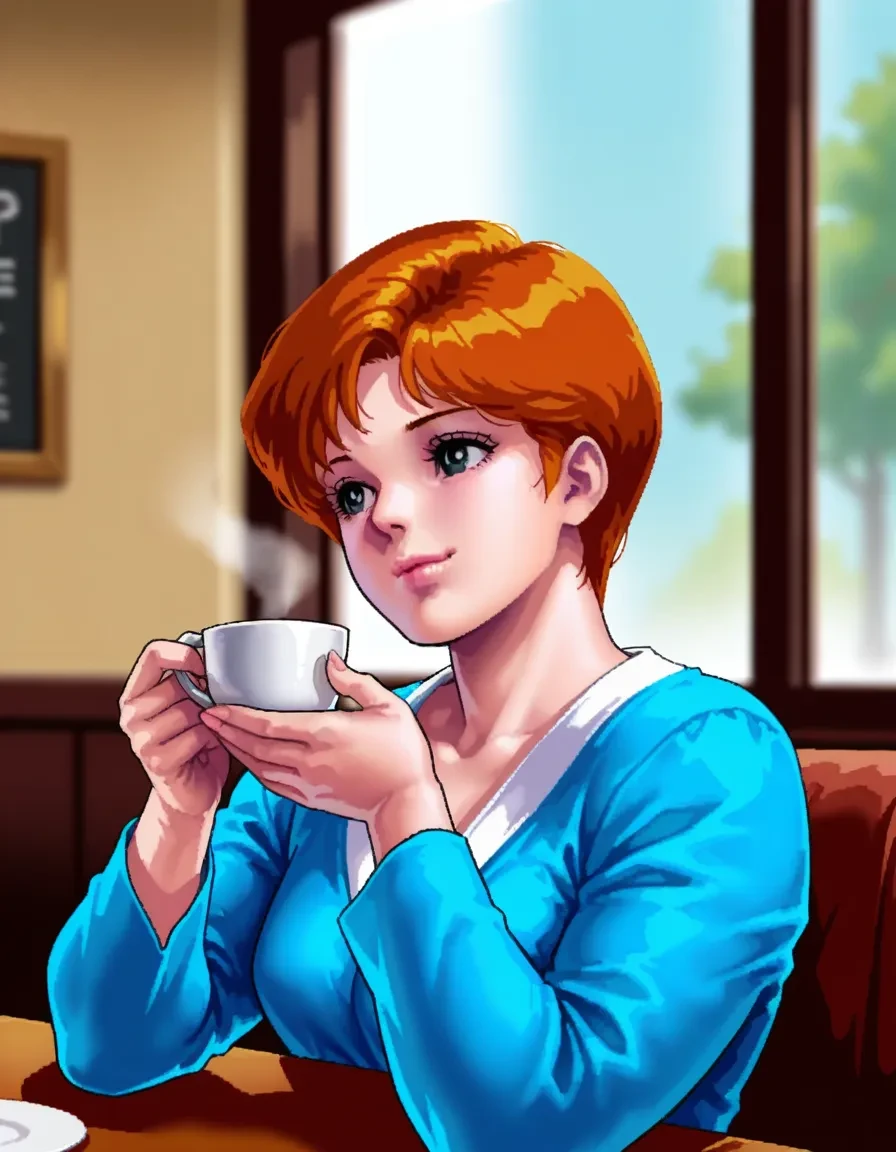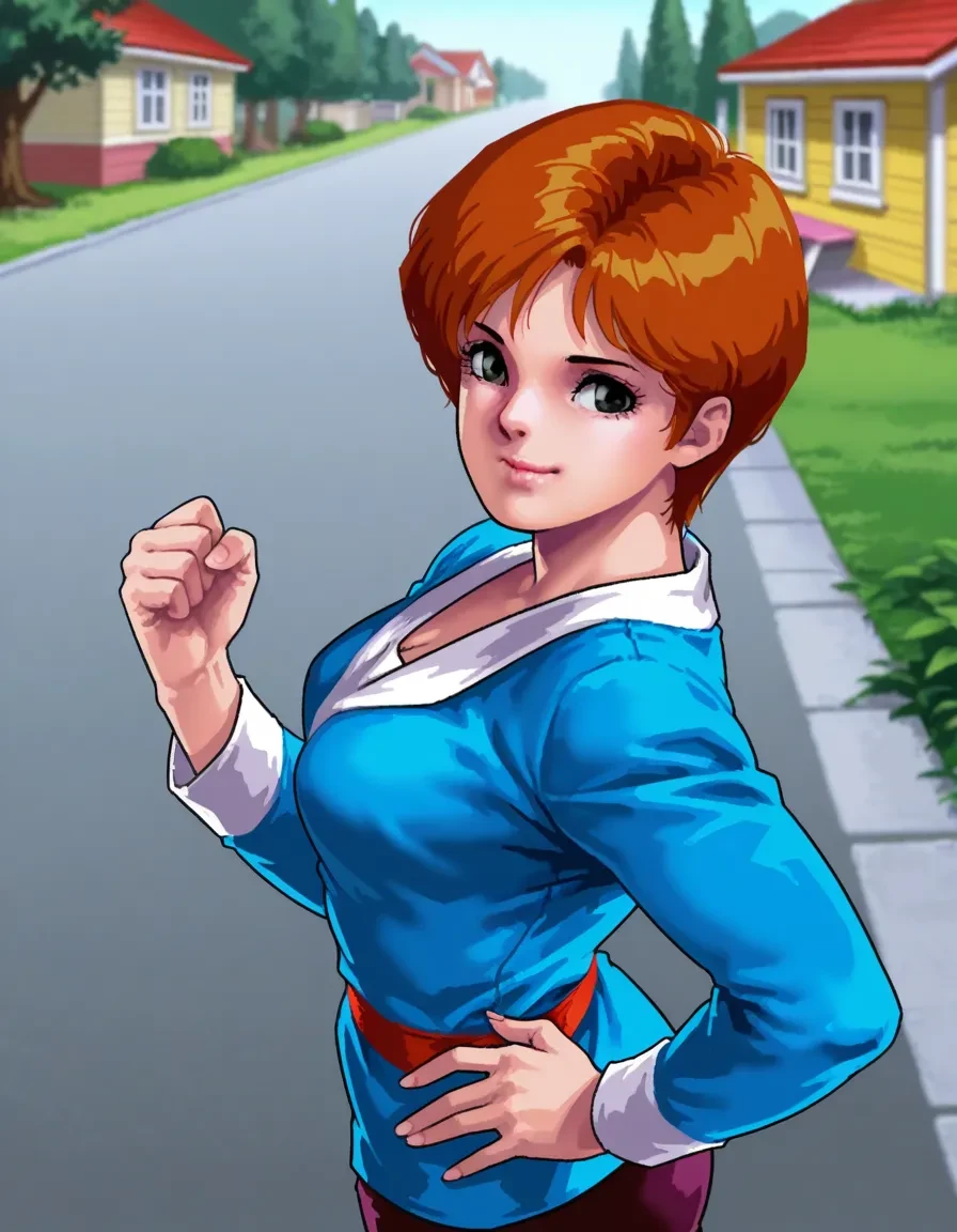 pdlucy,brown hair,orange hair,very short hair,eyelashes,lips,
