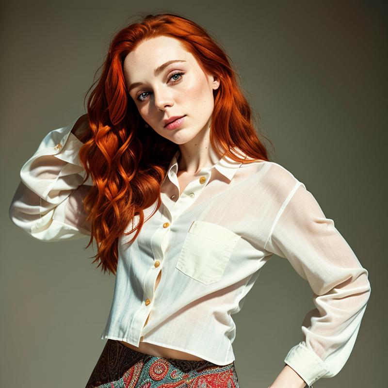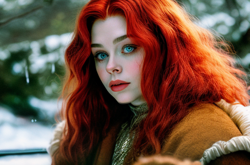 Note: The redness of Caoimhe's hair depends on the time of day. If in doubt, add long red hair to your prompt to be sure.