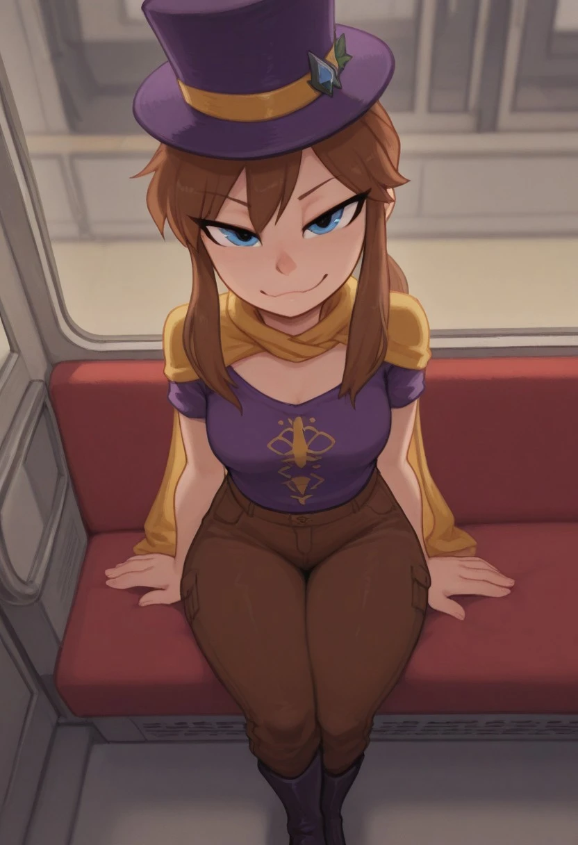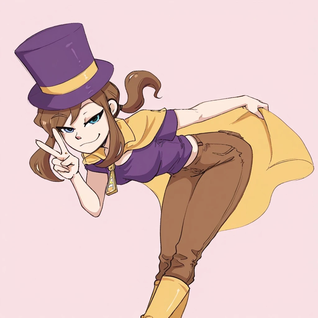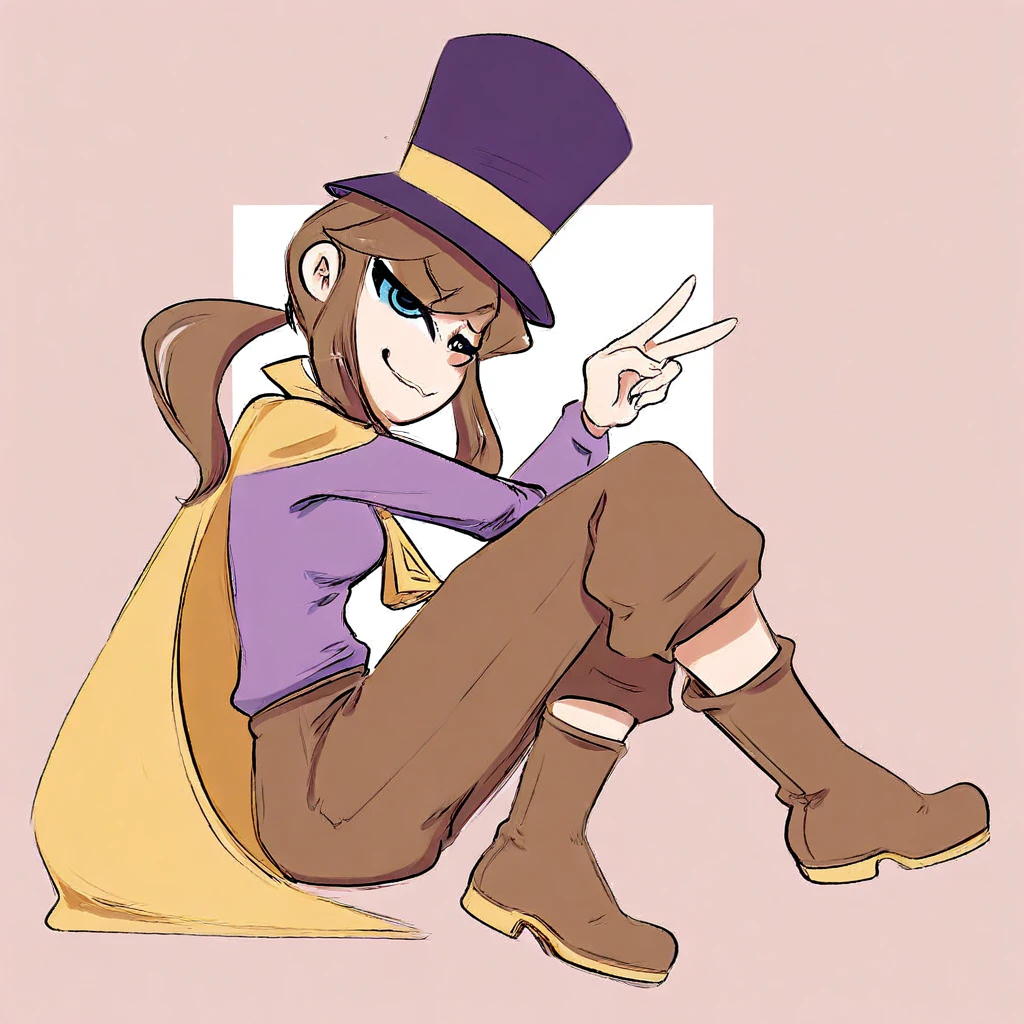 Hat: hatLady, brown hair, ponytail, blue eyes