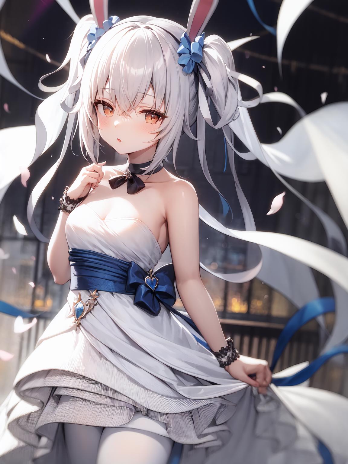 wedding_dress, fake animal ears, blue_ribbon,4.Snow Rabbit and Candy Apple