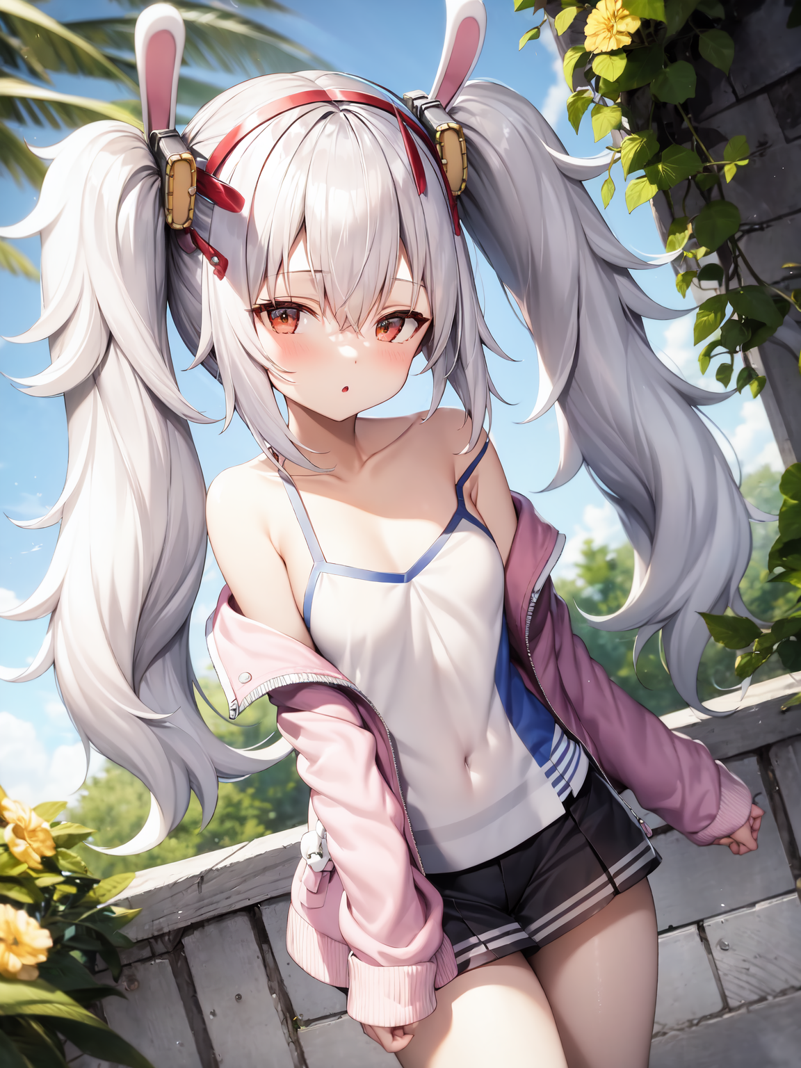 laffey, fake_animal_ears, camisole, pink_jacket
