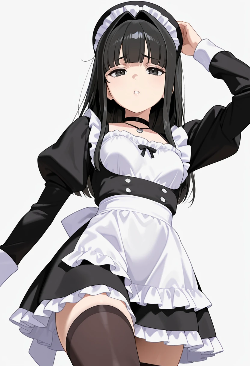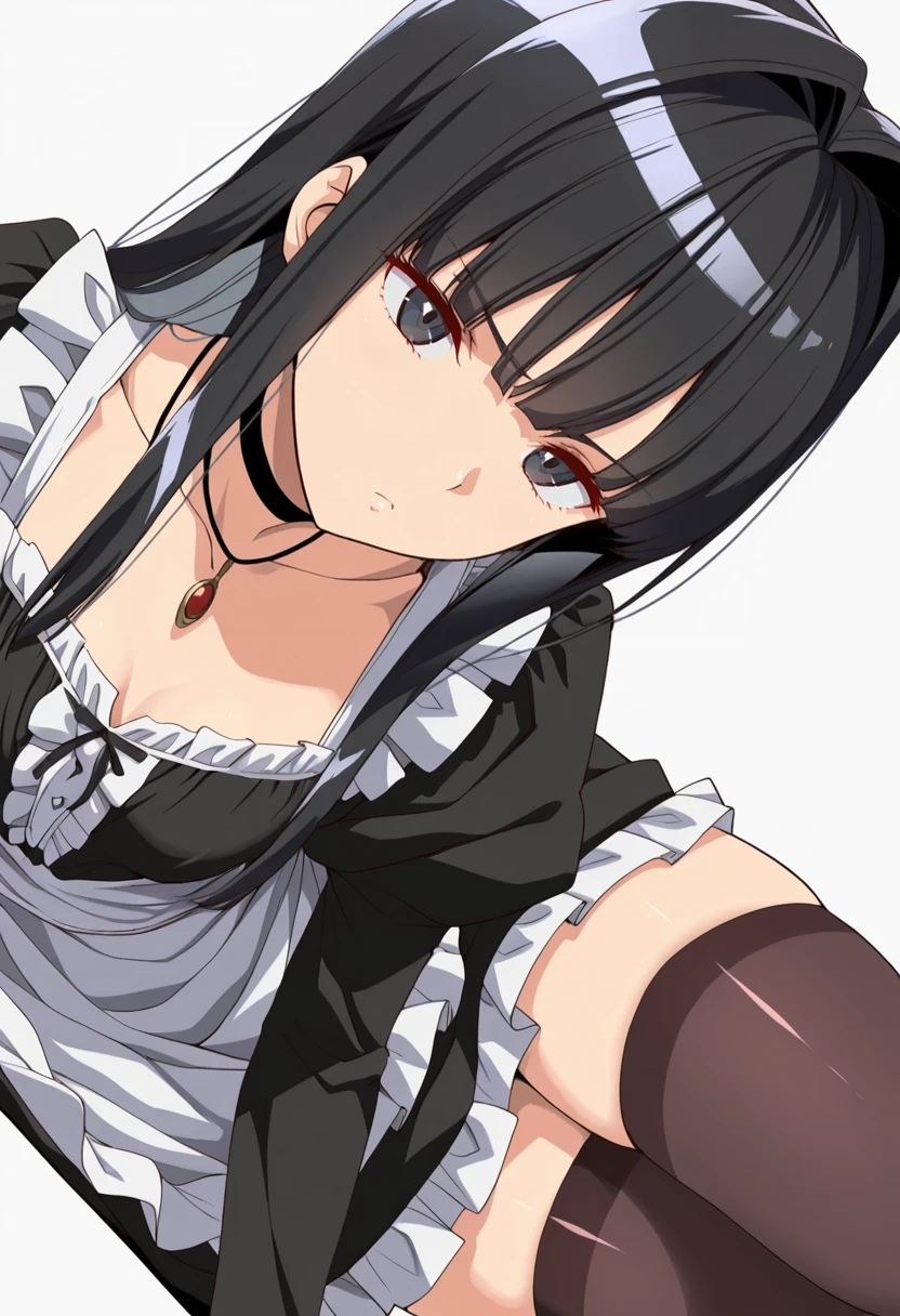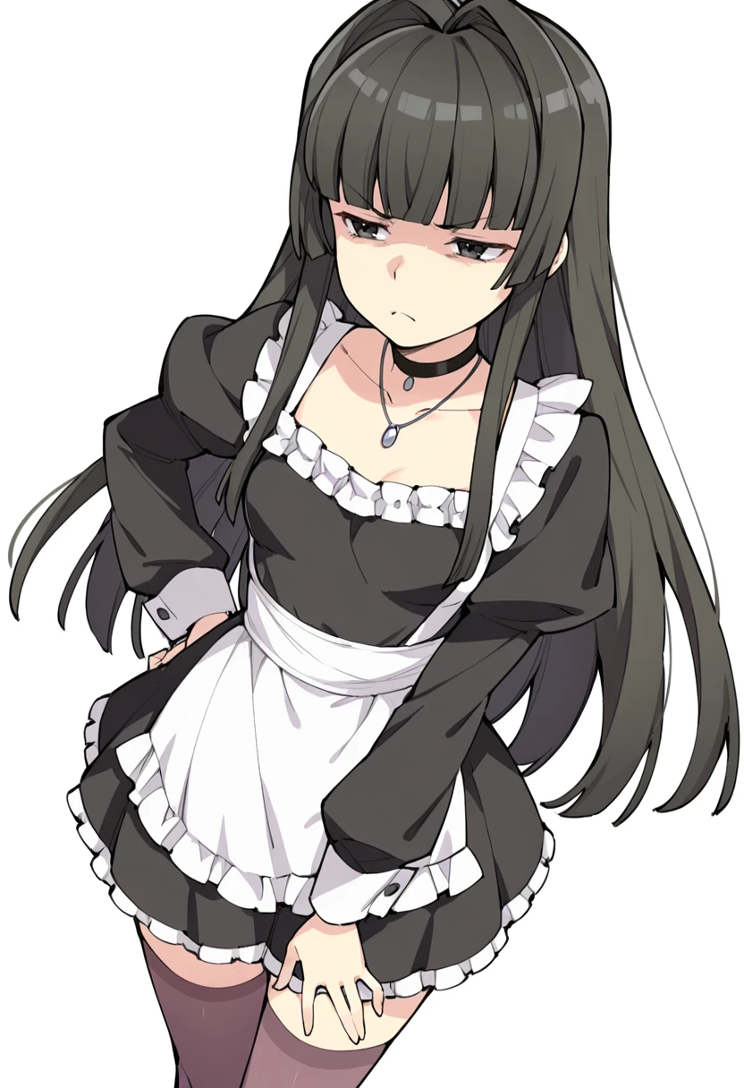 thighhighs,black choker,collar, thighhighs, frills, long sleeves, necklace,anime coloring, enmaided,