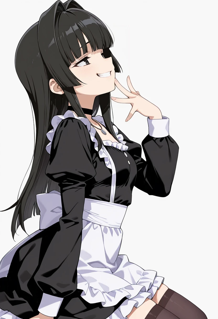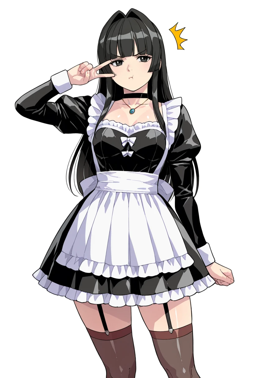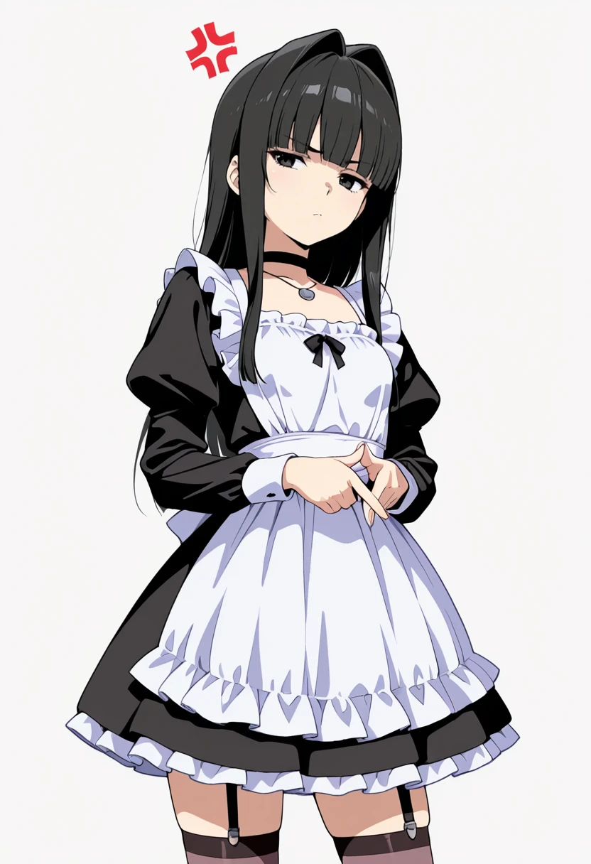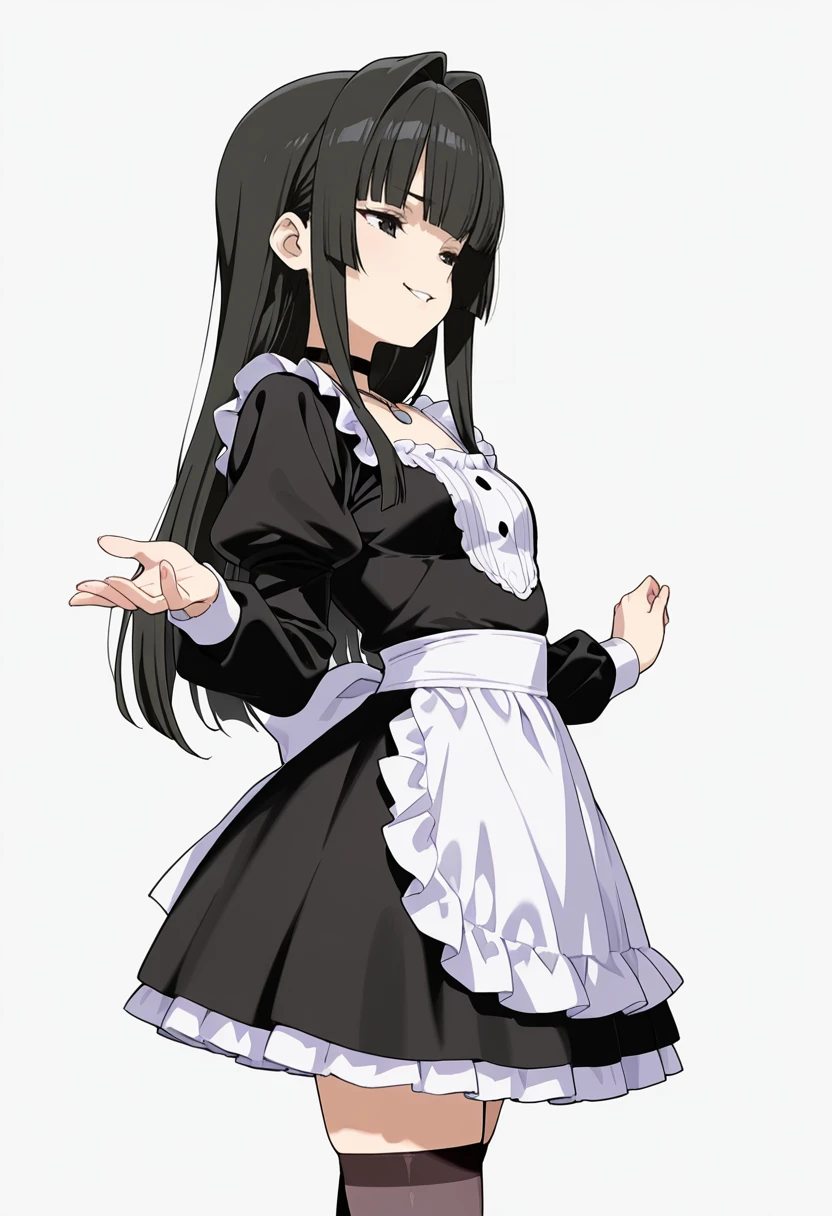 thighhighs,black choker,collar, thighhighs, frills, long sleeves, necklace,anime coloring, enmaided,