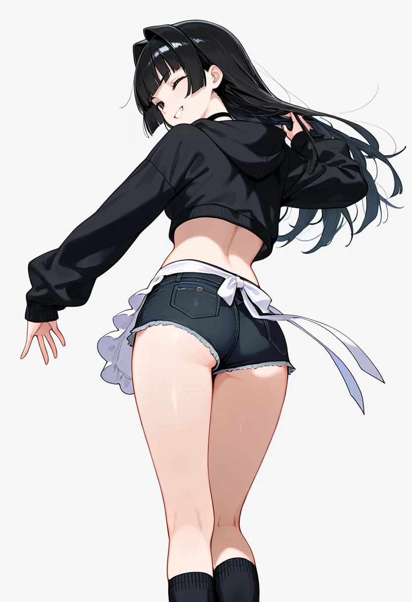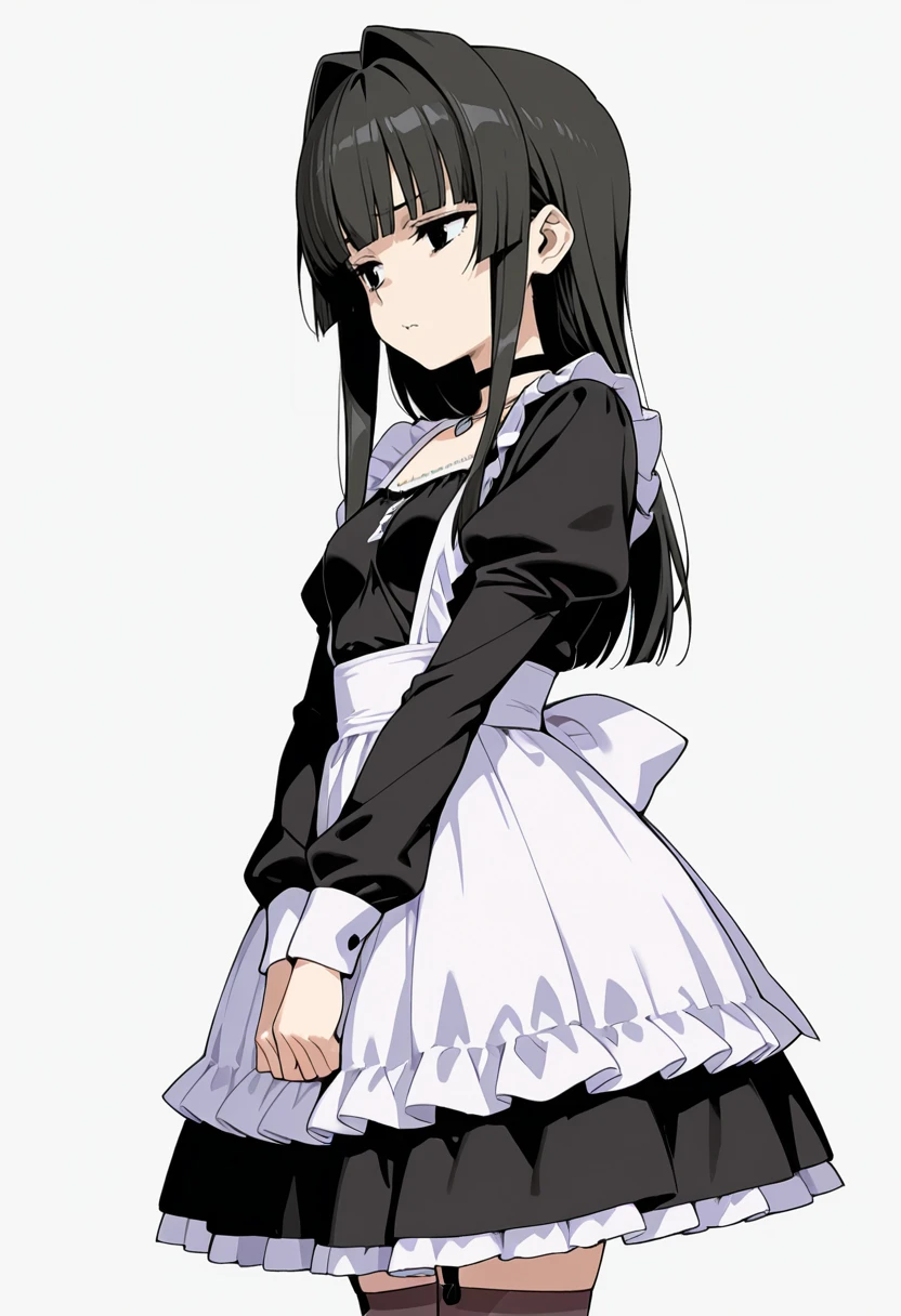 eichel_cnr, 1girl, black hair, long hair,small ???????, hair intakes, black eyes,blunt bangs,