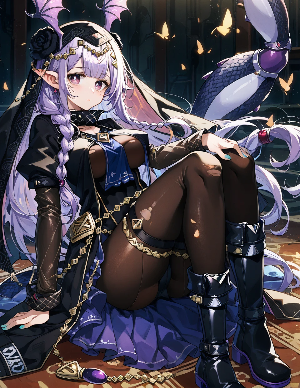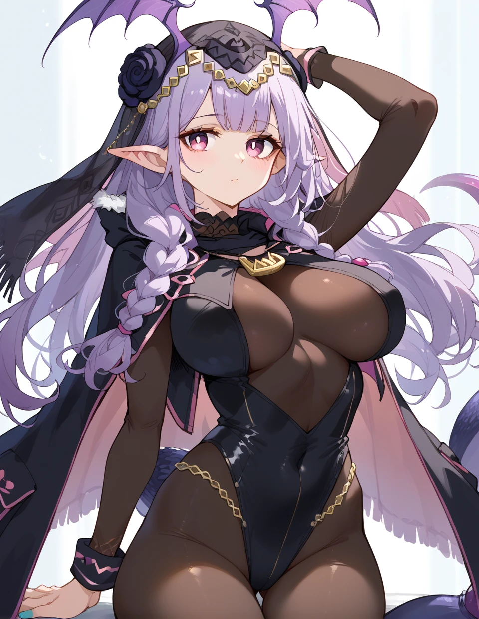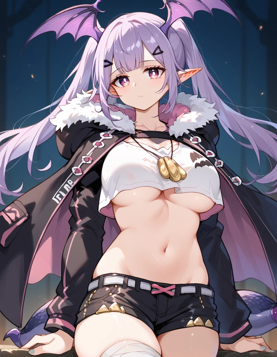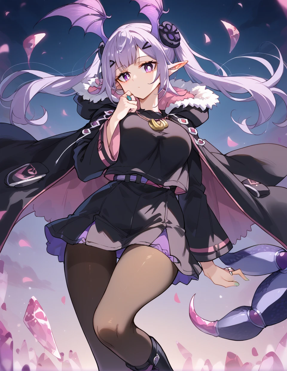 Recommended:pointy ears,twintails,long hair,light purple hair,bat wings,head wings,scorpion tail