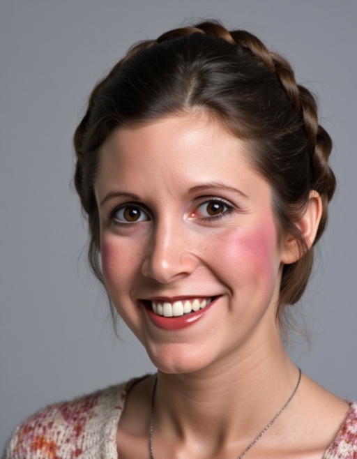 A Flux LoRa of a young Carrie Fisher, trained on images from the 70s and 80s.
