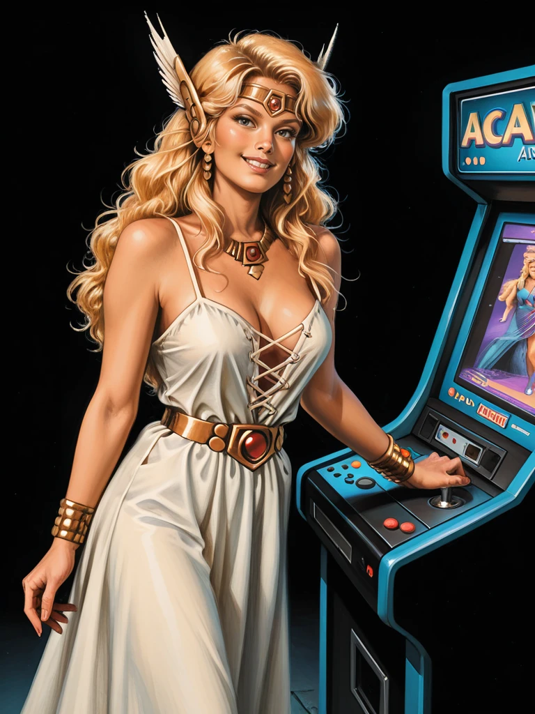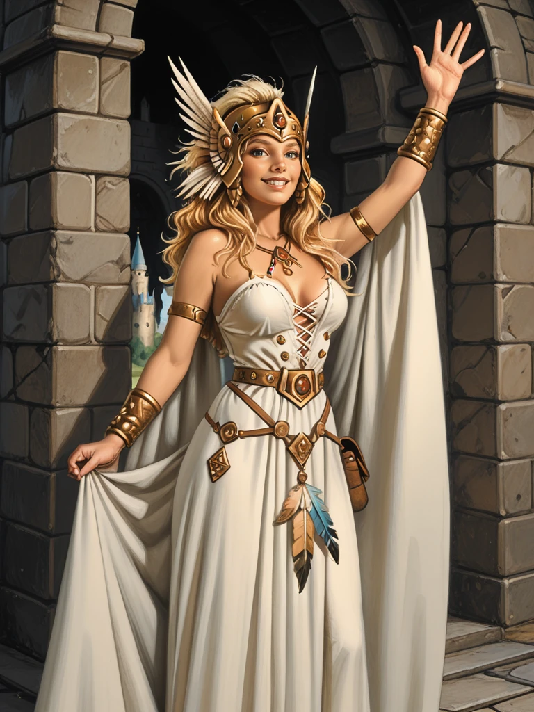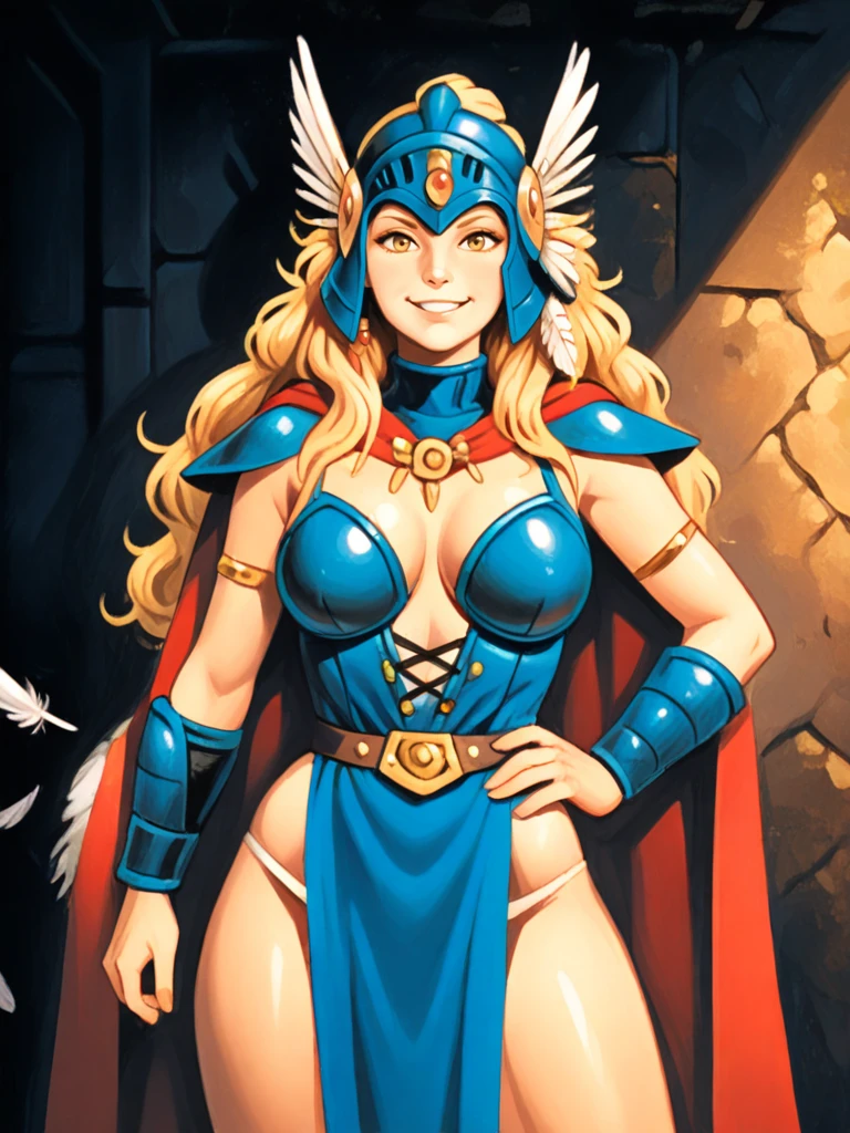 jewelry, helmet, feathers,, armor, dress, cape