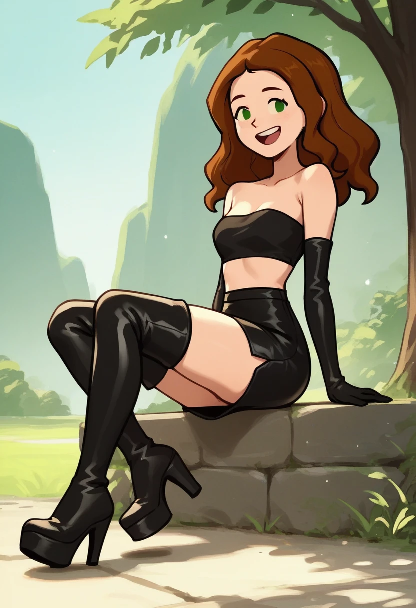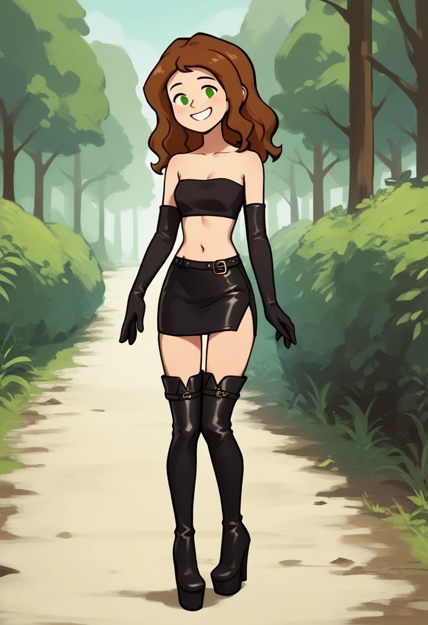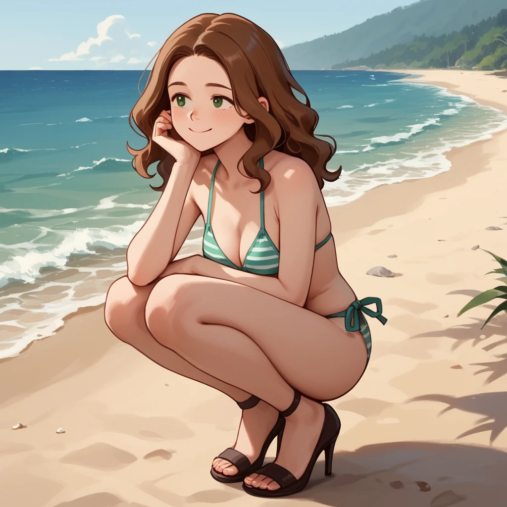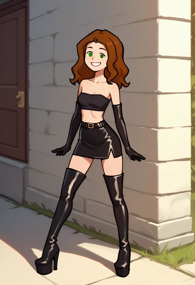 Abigail_Storybooth, wavy hair, brown hair, green eyes, dot eyes,